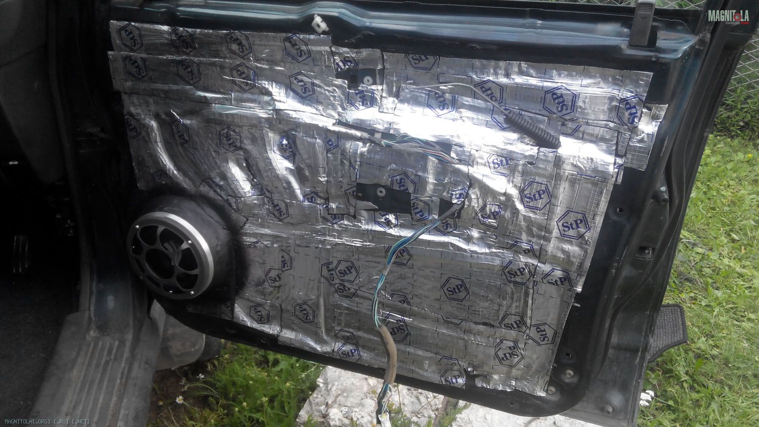 Еще катанул немного двери, тоже по дурацкому сделано, 2 слоя вибры и уже не закрываются, а про шумку и говорить нечего. Просверлил дырку и конфирматом прихватил снизу.