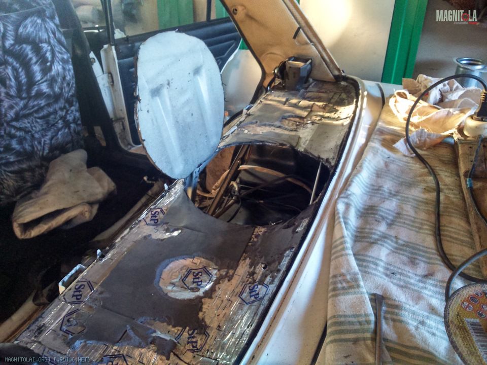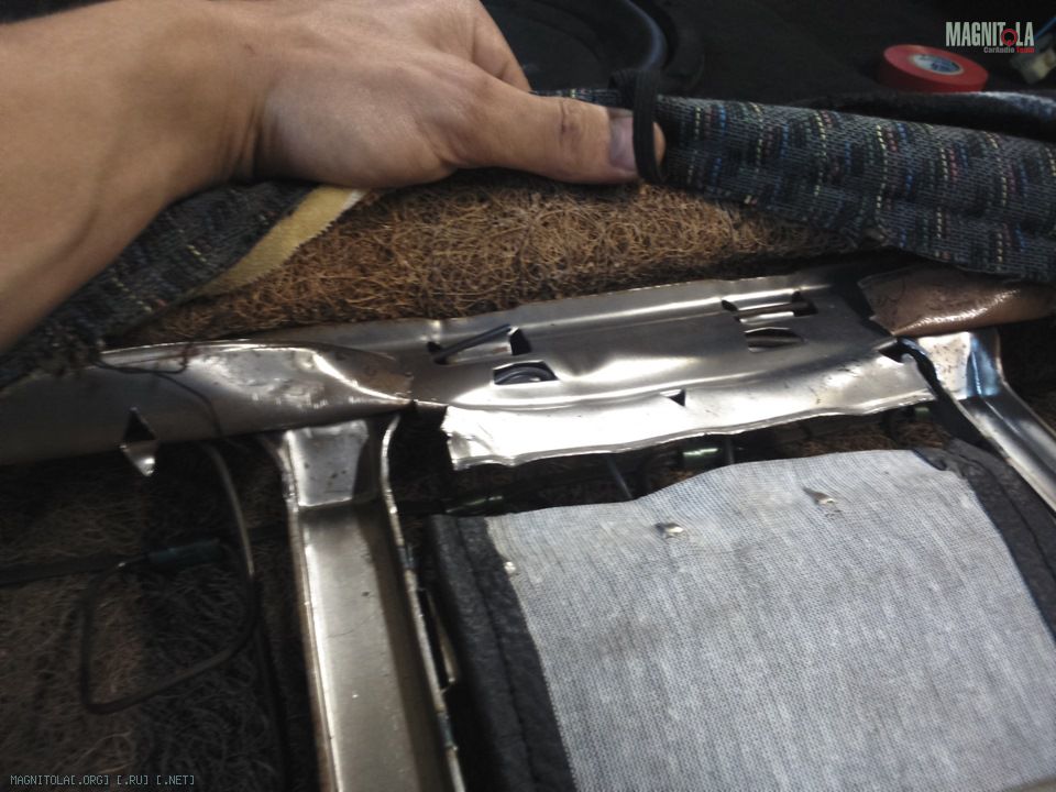 Недолго думая, сдираем обивку седалищщща, берем в руки приспособление для изготовления вмятин (молоток) и, под треки Филлипа Киркорова, фигаичм вмятину: