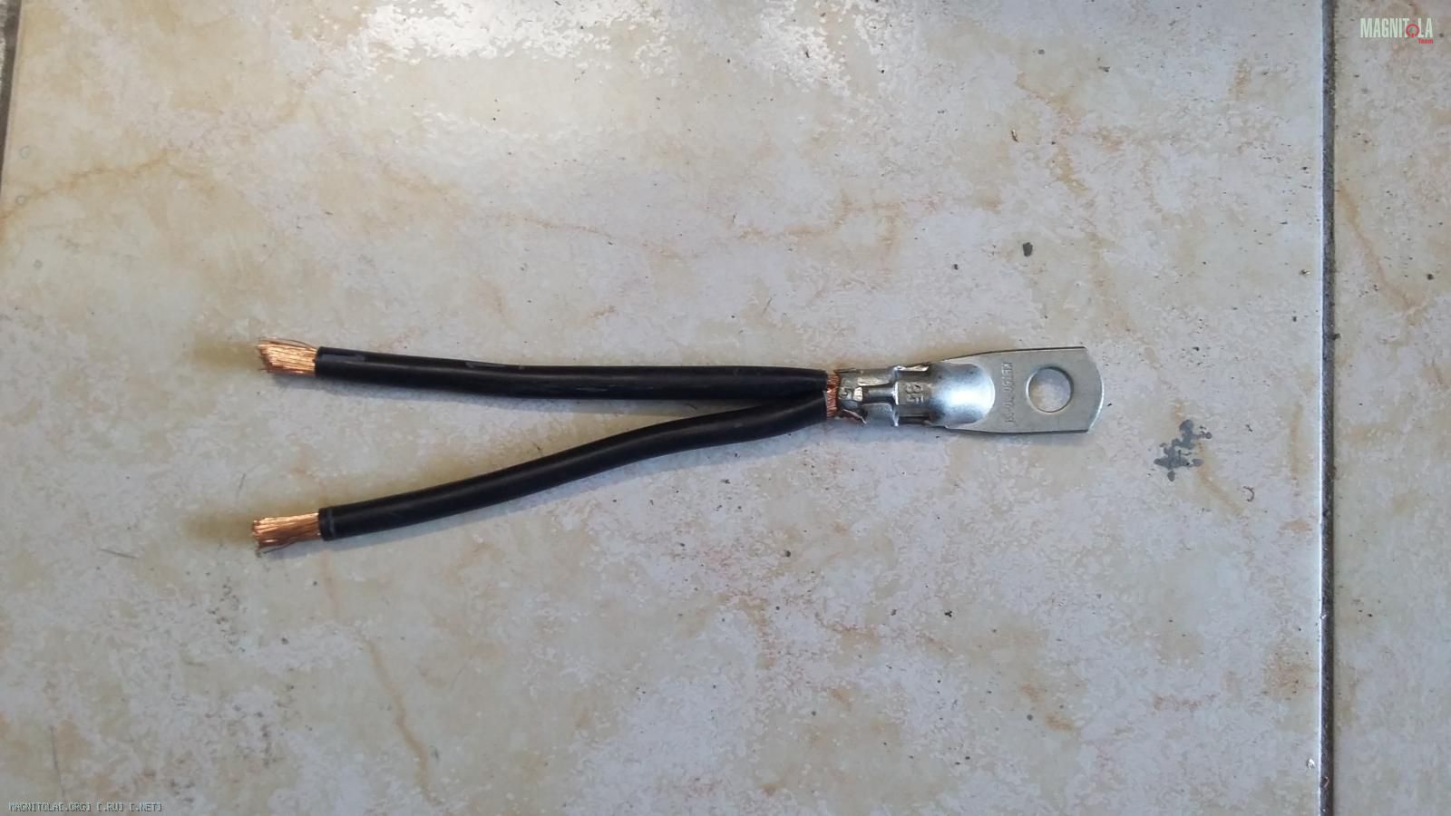 и плюс и минус два кг 25 зажаты в наконечник квт 50 хотел каждый провод в квт 25 но электрики на работе уверили с одним квт 50 ничуть не хуже будет а гемороя с прикручивание к акуму меньше