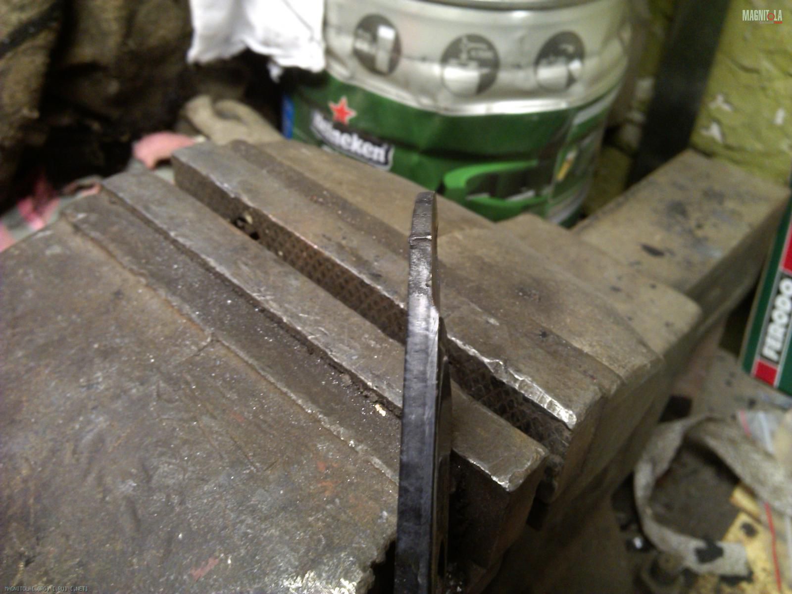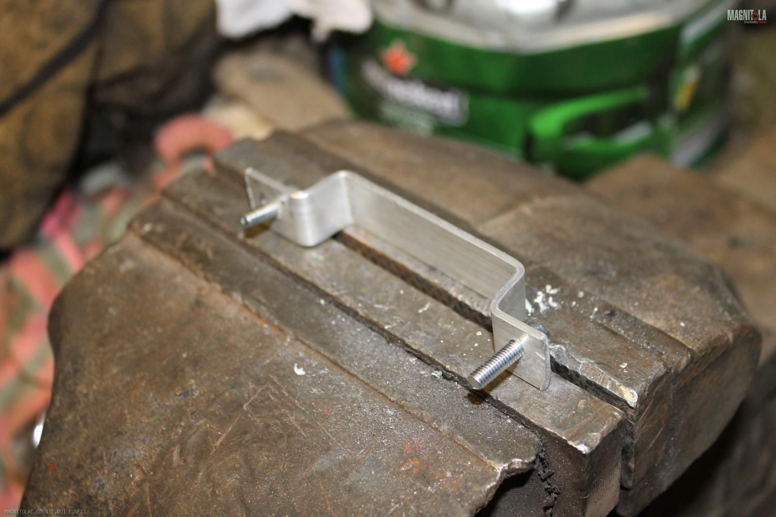 Крюк, который будет прижимать клемму, стачиваем, чтобы его не увело в сторону: