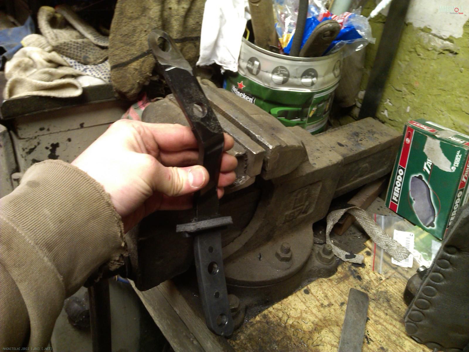 Минусяра эта крепится могучими хомутами к перфорации кронштейна дистра: