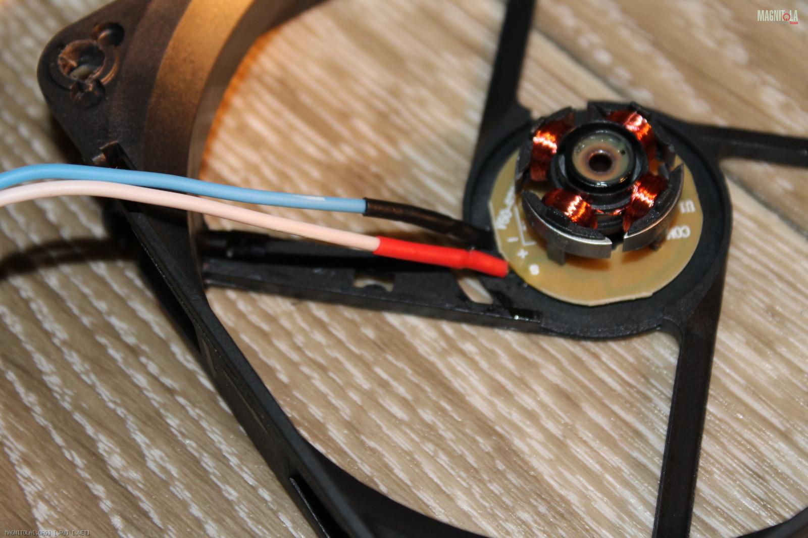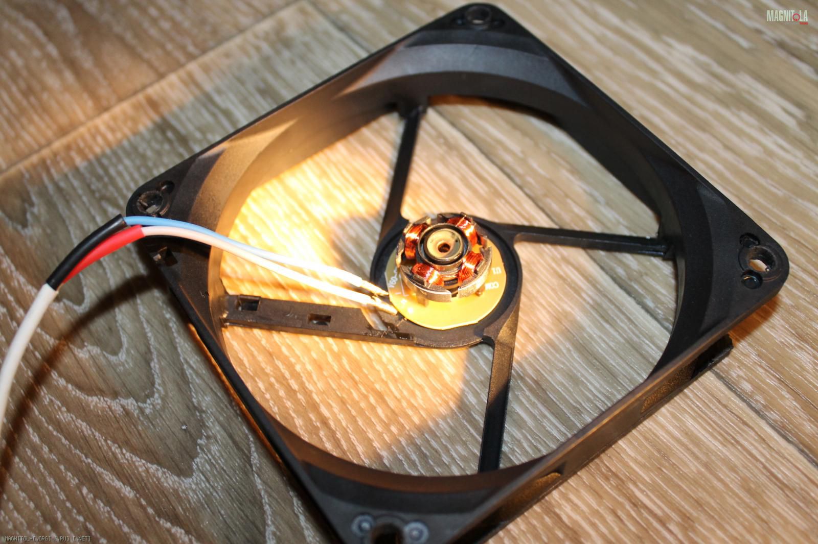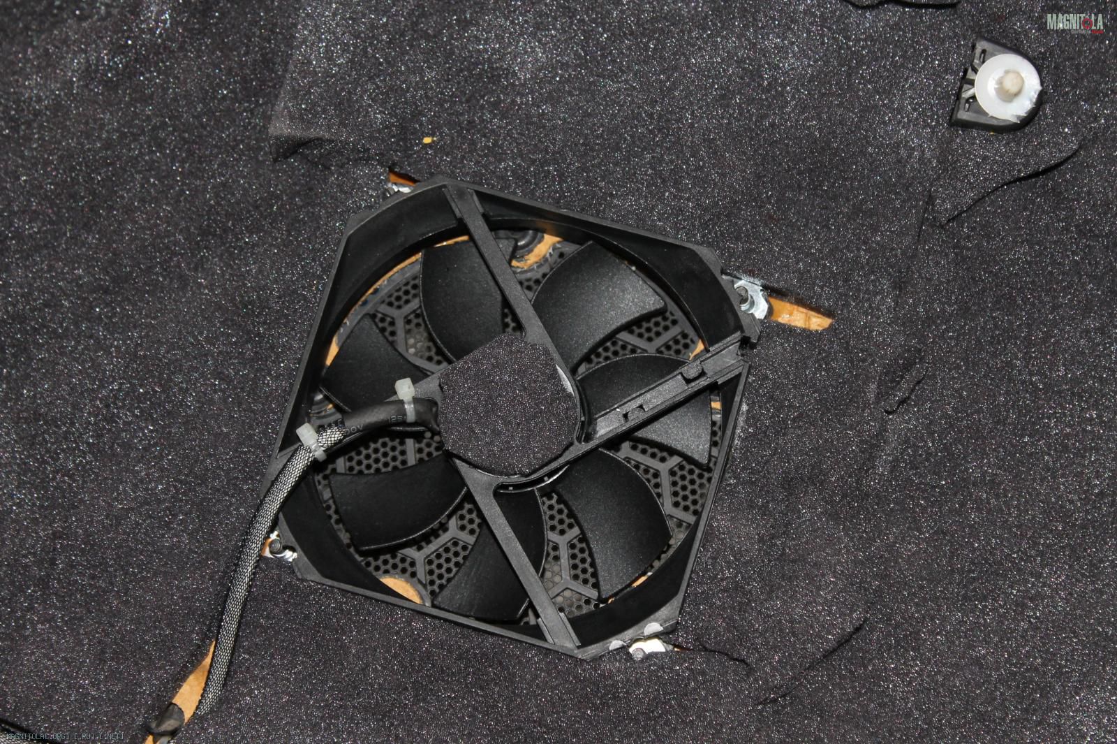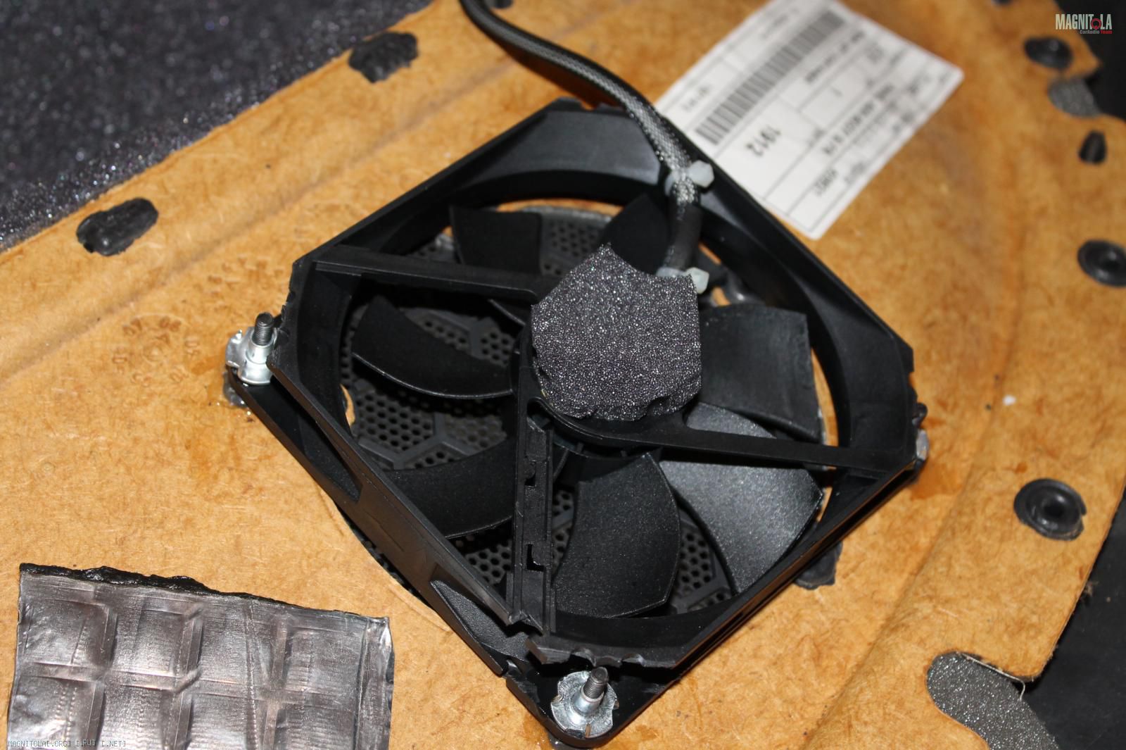Вентилятор крепим гайками с пресс-шайбой, в роли которых выступили перевернутые усовые (были):