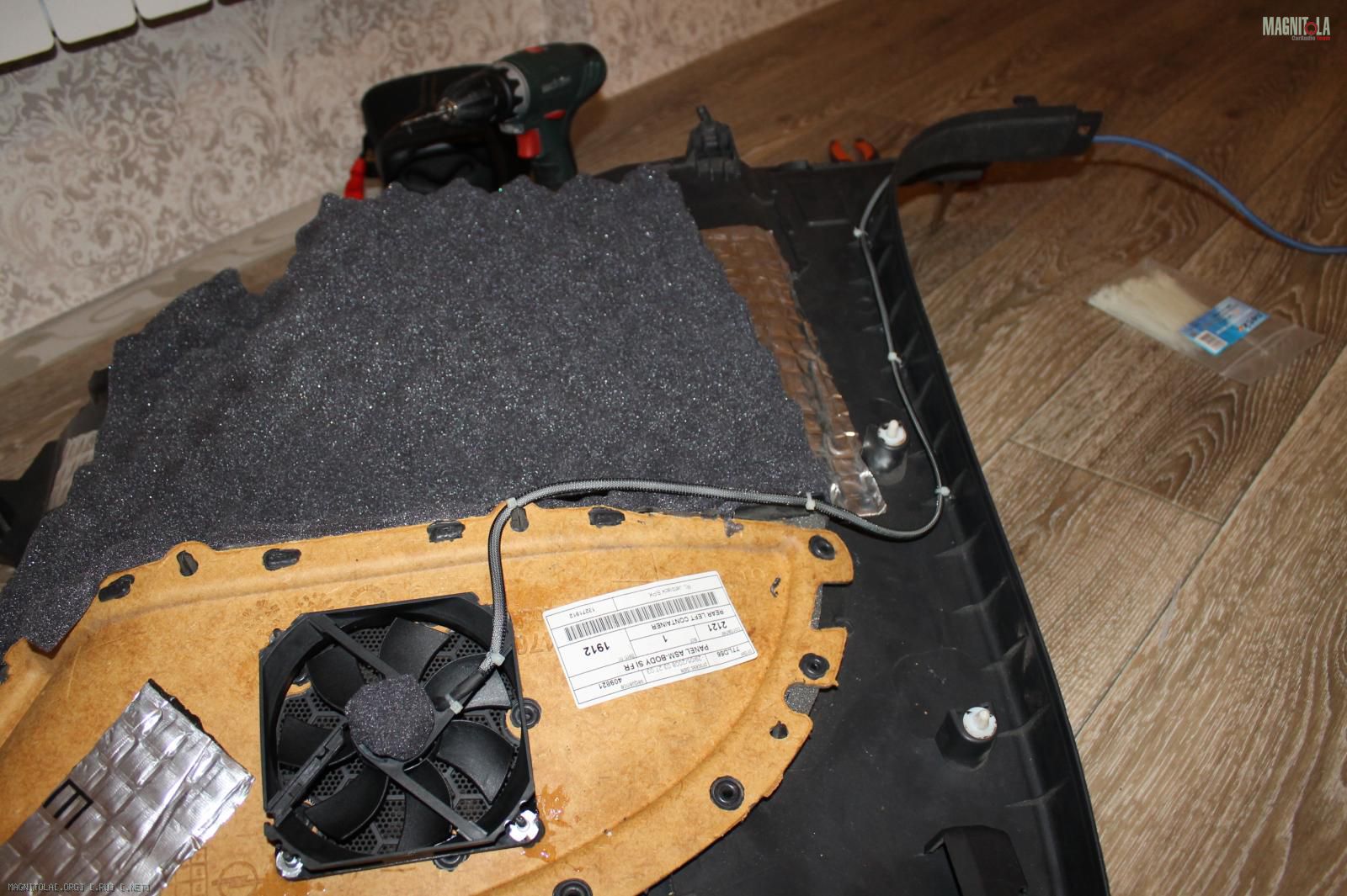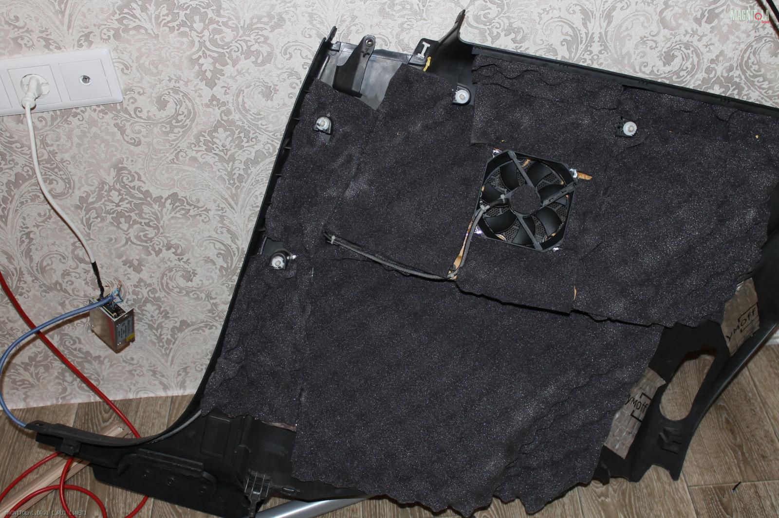 Купил вентилятор 120мм, максимально возможный по размеру, чтобы эффективно использовать штатную сетку в обшивках.
