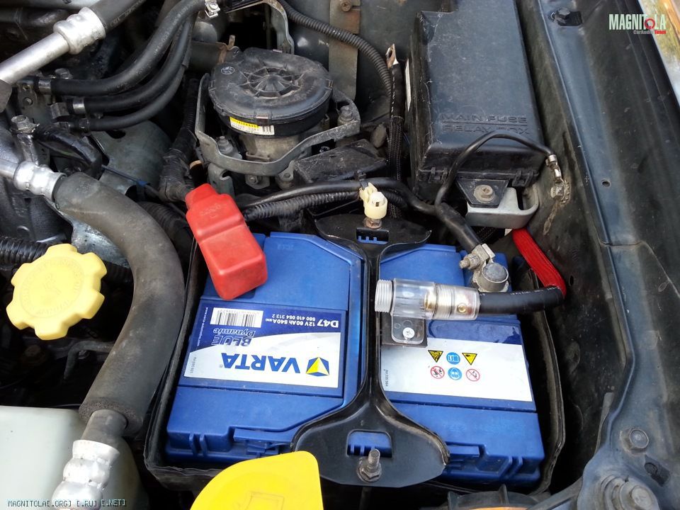 В качестве силового кабеля был взят КГ 35 на плюс и минус. Провода прошли через резиновую заглушку под передним левым крылом, чуток потеснив штатный жгут, далее по левому порогу по штатным кабельканалам.
