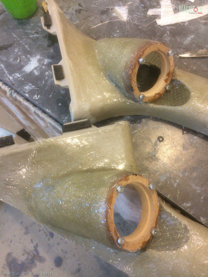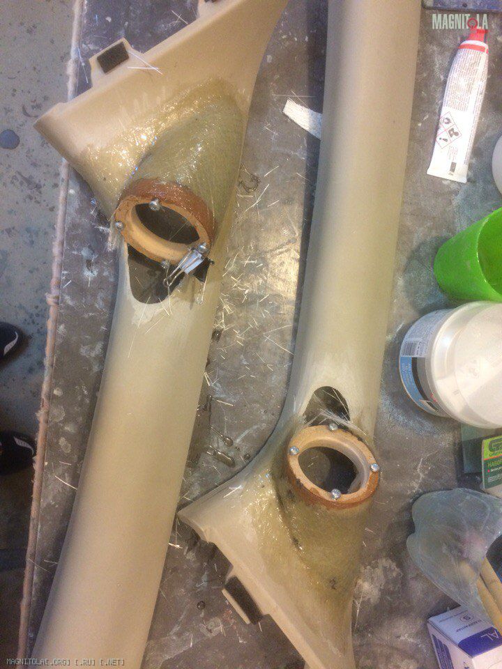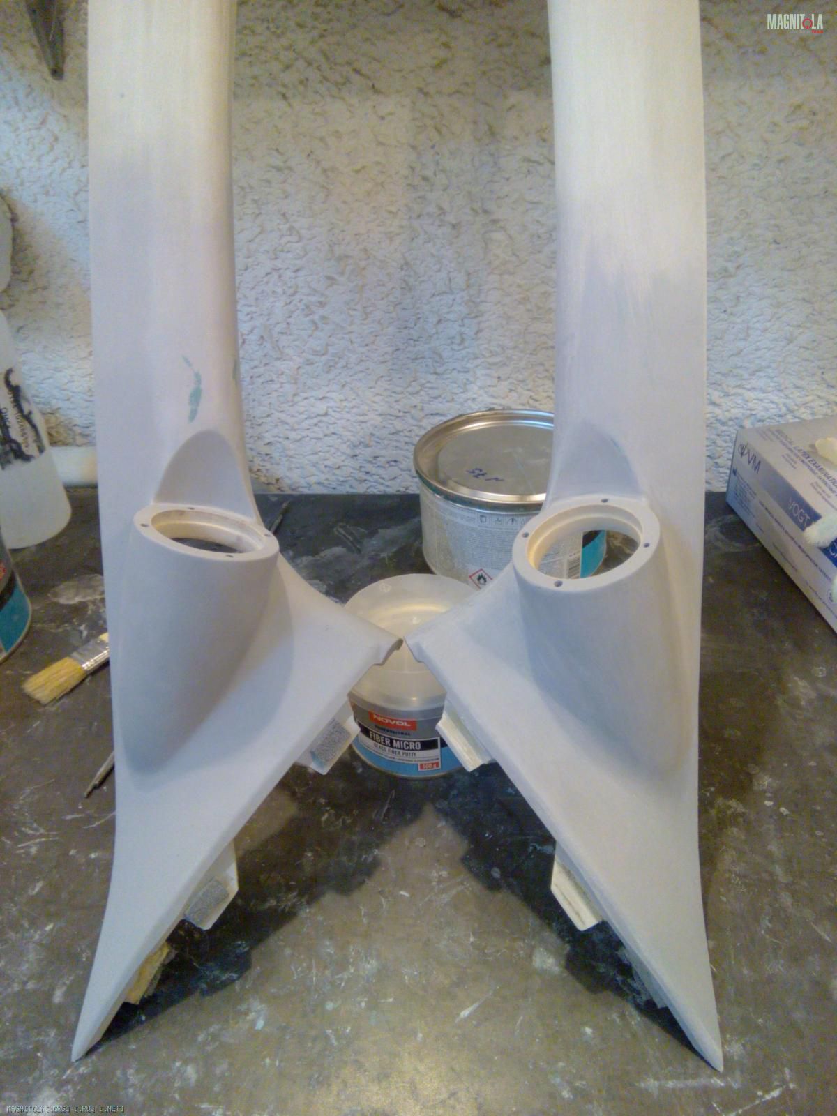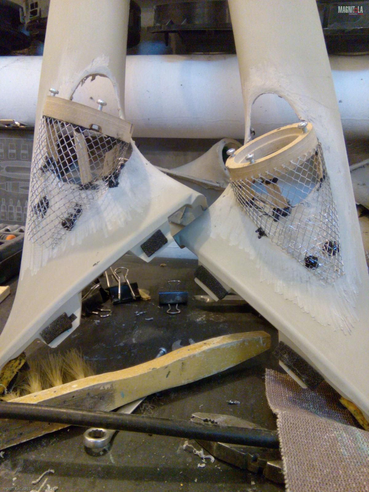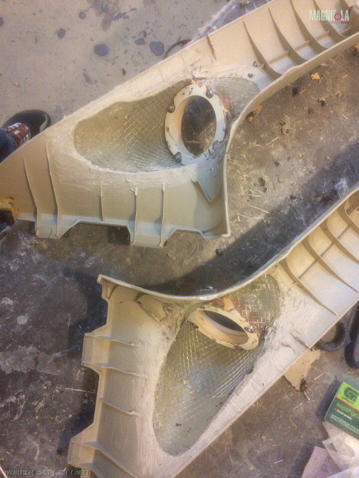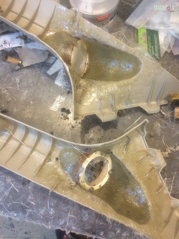 Закладываем стекломатом. Внутри вырезаем лишний пластик и также закладывем стекломатом, чтобы получился слоенный пирог и наши подиумы никуда не отлетели. Дальше долгая и мучительная работа наждачкой и дремелем, в итого форма готова