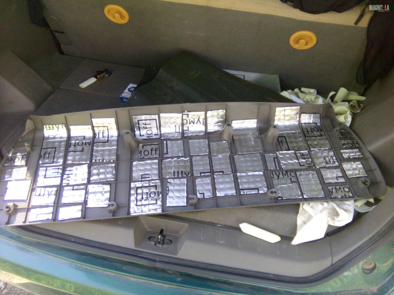 Ну уж очень звонкий первый пол. Закатываем его виброй (Шумофф М4) джа и калитку багажника за одно, и обшивку багажнику туда же :laugh1: