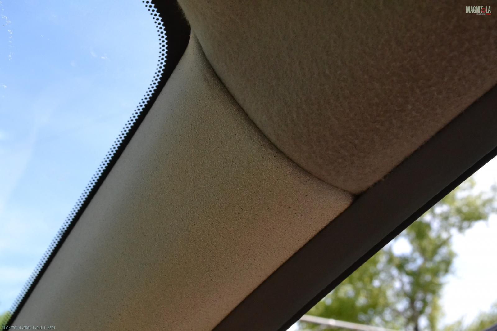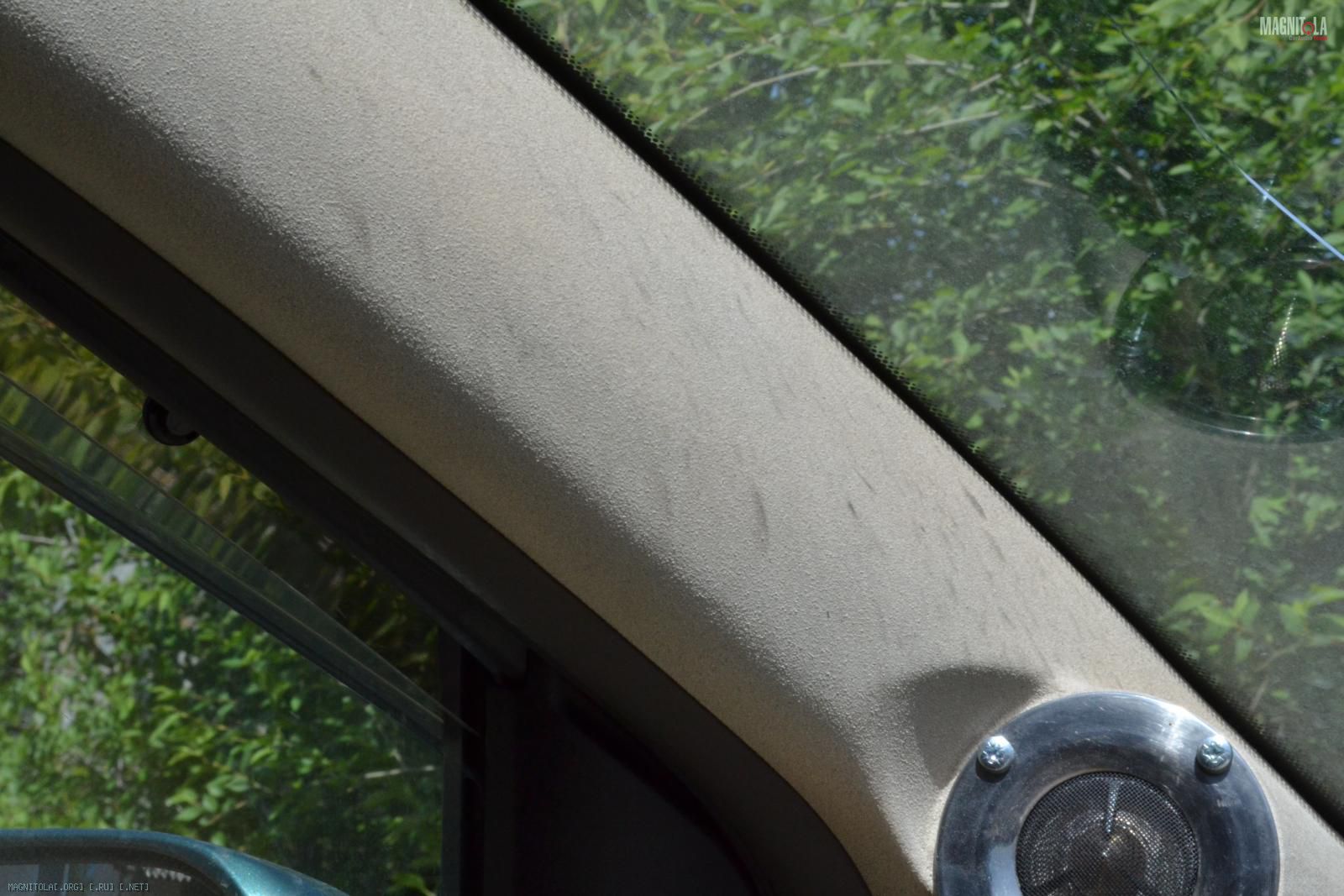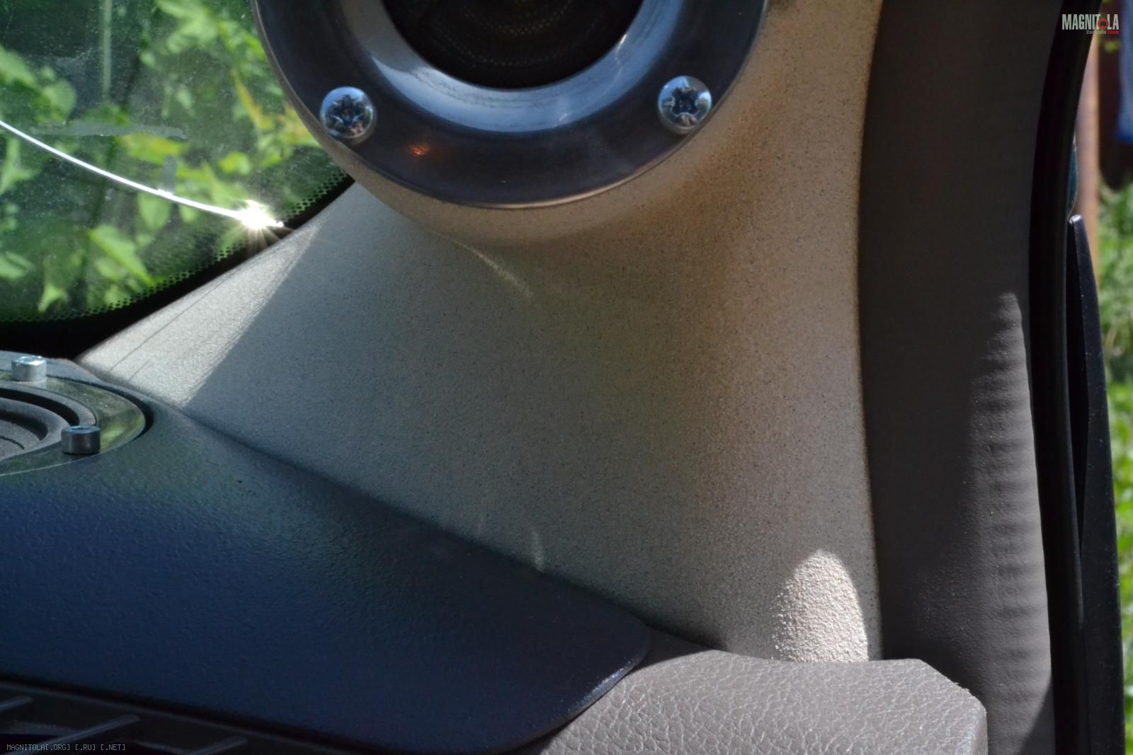 Обтягивать кожзамом или алькантарой как-то не очень хотелось, потому что без швов тут ни как. Пошарился по магазинам и нашел краску с мелкой шероховатостью, практически в цвет родных стоек, цвет называется карибский песок, выглядит очень круто, как заводские получились.