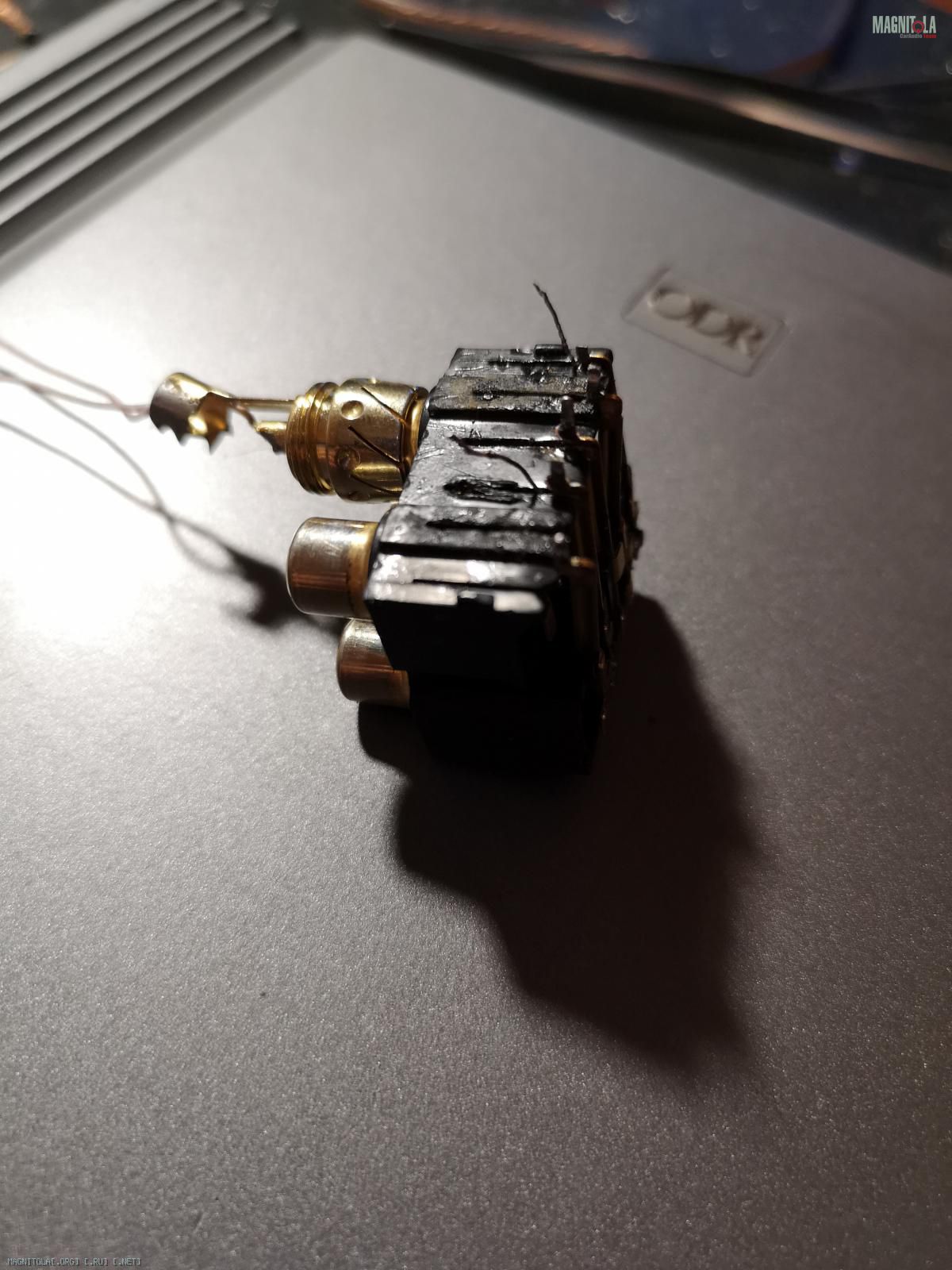 Хандрил у меня один канал на А50, покачав клемник RCA понял что дело в нем. Решил избавиться от него. Разобрав клемник был удивлен от увиденного. Видимая часть подводящих пластин толстая покрыта золотом, с ней все хорошо. Но как оказалось есть невидимая часть и там все грустно.. Проводочки чуть толше волоса да еще и окислились. Очень удивлен был увидеть такое, с учетом того что в усе все сделано по максимому и вот такое вот..
