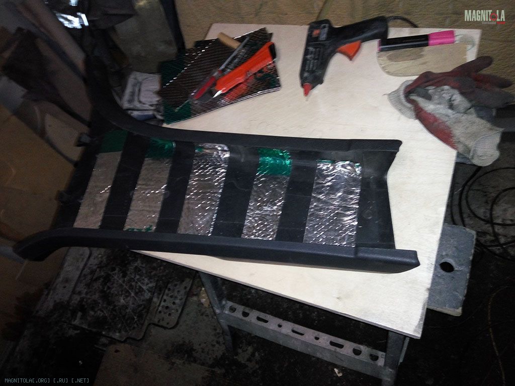Поперечные балки не трогал, они миллиметра три толщиной, лепить на них вибру – пустая трата материала: