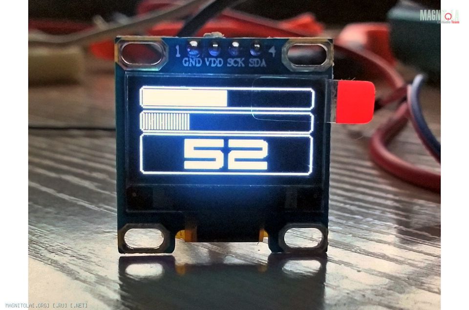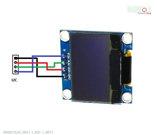 Шина I2C служит для связи с внешним дисплеем OLED 128x64 на базе SSD1306. Сверху-вниз: GND, VCC, SCK, SDA.