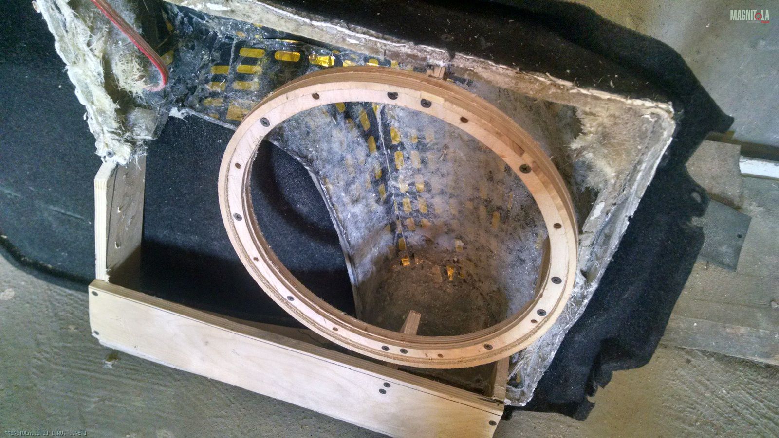 Но взвесив все за и против, решил вынести кольцо. Крышку фальшпола так и так придется переделывать, а это легче, чем потом опять лепить короб после смены саба на более габаритный.