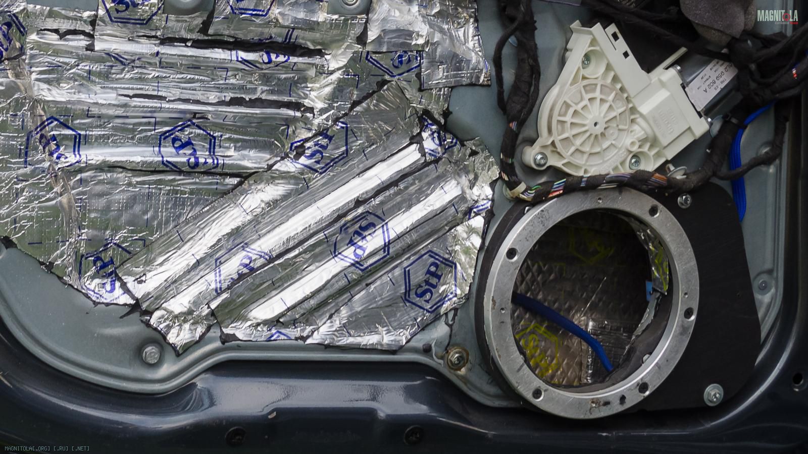 Двери этого автомобля ясчитаю достаточно удачными для установки акустики, так как внутрення филенка съемная. Дверь внури завибрена СТП Голд и Сильвер. Дверная карта - Сильвер + битопласт 5. Проставочне кольца сделаны изначально из дубовой доски и дюралюминия. Но потом доска потрескалась и переделал с фанеры. Думаю с фотографий будет все понятно.