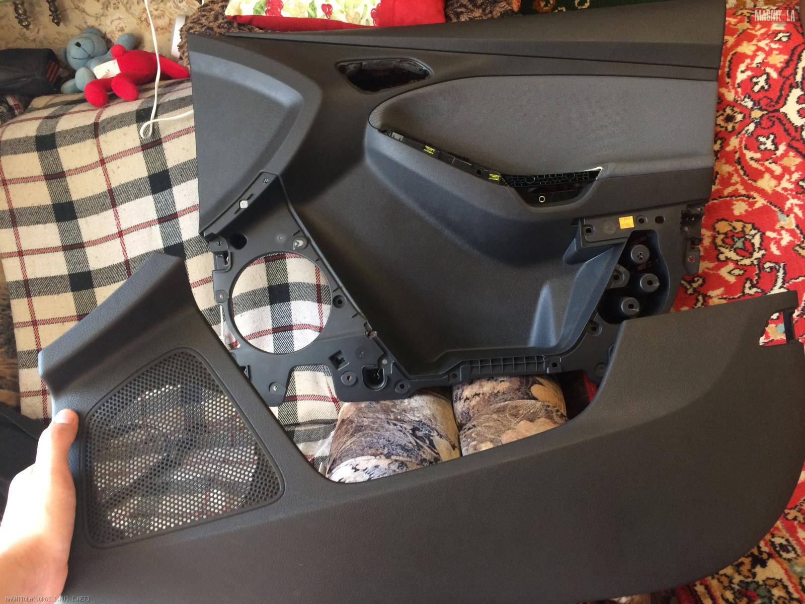 Slavik1991, ну по ходу пару вопросов еще задам. Интересно как короб под саб лепили. Каркас я вижу, но не понятно как подиум под дин делался, с толщиной стенок там все нормально?) Опорные кольца на дверной карте и те, что в двери между собой как-то жестко соединены или обшивка на родных клипсах будет держать мид?