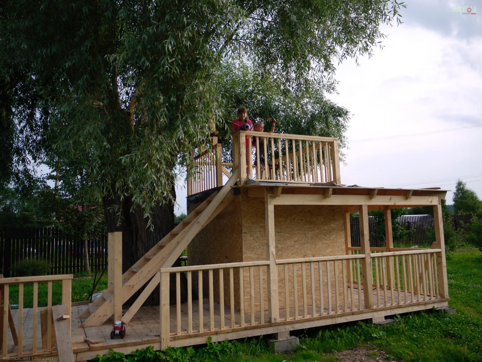 Планов на лето было много. Решил попробовать убрать саб из ЗЯ и слепить стелс, так как детская коляска ну никак влезать в багажник с ним не хочет. Запасся смолой со стекломатом, пошел в сарай посмотреть что есть из МДФ. Под ногами крутилась мелкота и не давала сосредоточиться. Мысли пошли в сторону чем бы их занять...В результате стелс как то трансформировался и получился домик... на дереве:mosking: