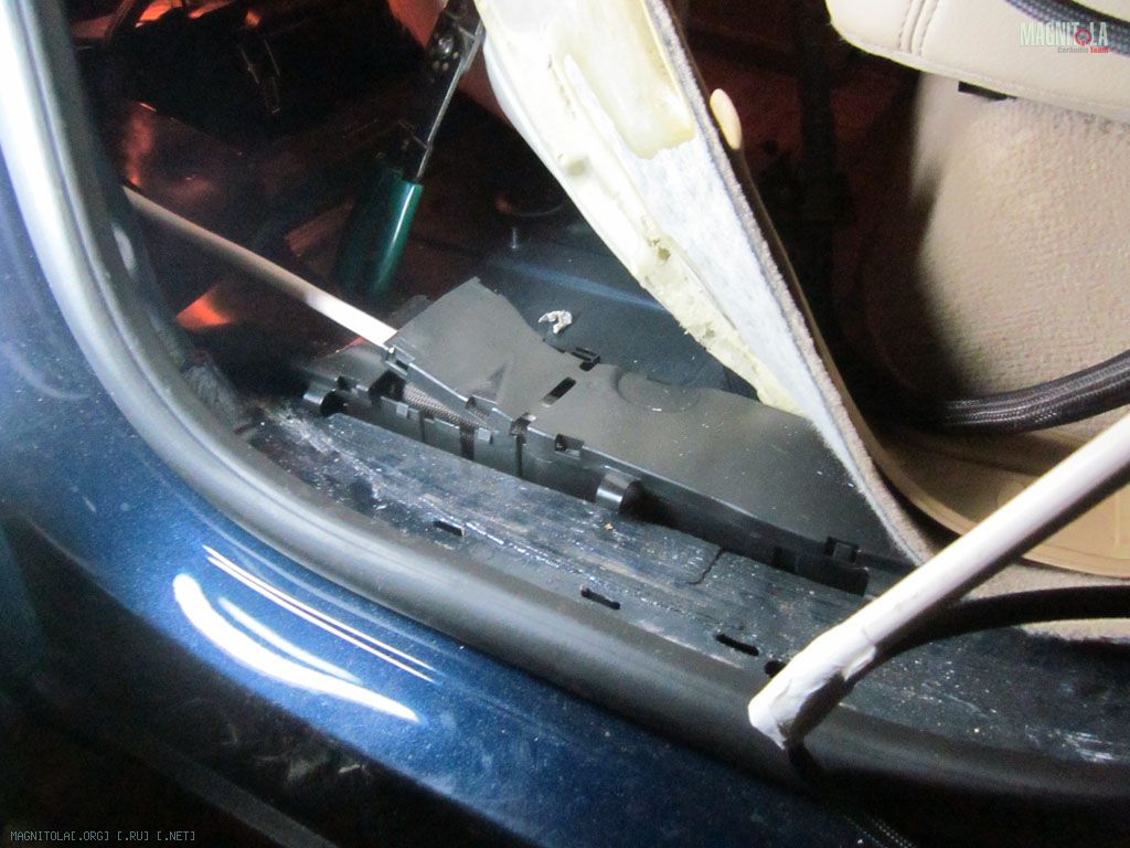 Примерил накладку на порог. Фигульки она встает, пришлось отрывать площадки (та еще развлекуха, клеил то на совесть, хорошо немного). И искать альтернативу. Нашел. По обоим бортам под ковром проложены штатные кабельные каналы. Правда водлезть к ним без снятия сидений как минимум проблематично. Есличо, в них можно легко провозить пармезан, апельсины и прочие санкционные продукты.