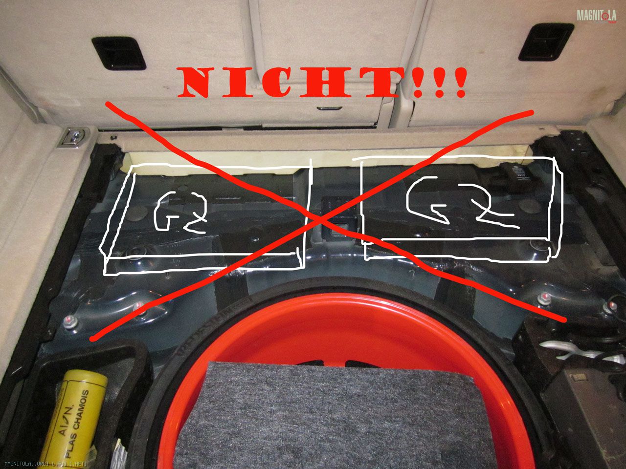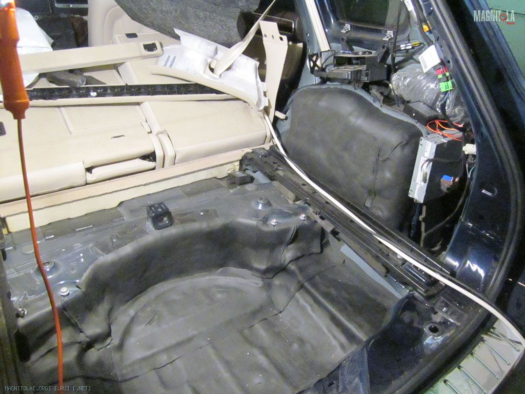 Но, являясь законопослушным гражданином, просто напхал туда проводов. В кабельных каналах есть разрыв под передними сидениями, это я к тому что проводка в задние двери не потребовала актов вандализма. В багажник провода заходят под ковром салона , задние сидения пришлось поднять на 4 мм при помощи шайб-проставок для сохранения возможности регулировки вперед-назад. Да, очень удивили…. пещеры под задними сидениями. Уж не знаю зачем так сделано, но под задними сидениями реально пустота, на глаз литров 30 там точно есть. Фото не покажу, один я не в состоянии выволочь большУю половину заднего дивана ничего нигде не поцарапать – ковер в результате я так и не снимал.