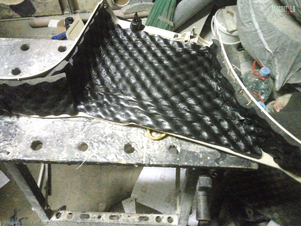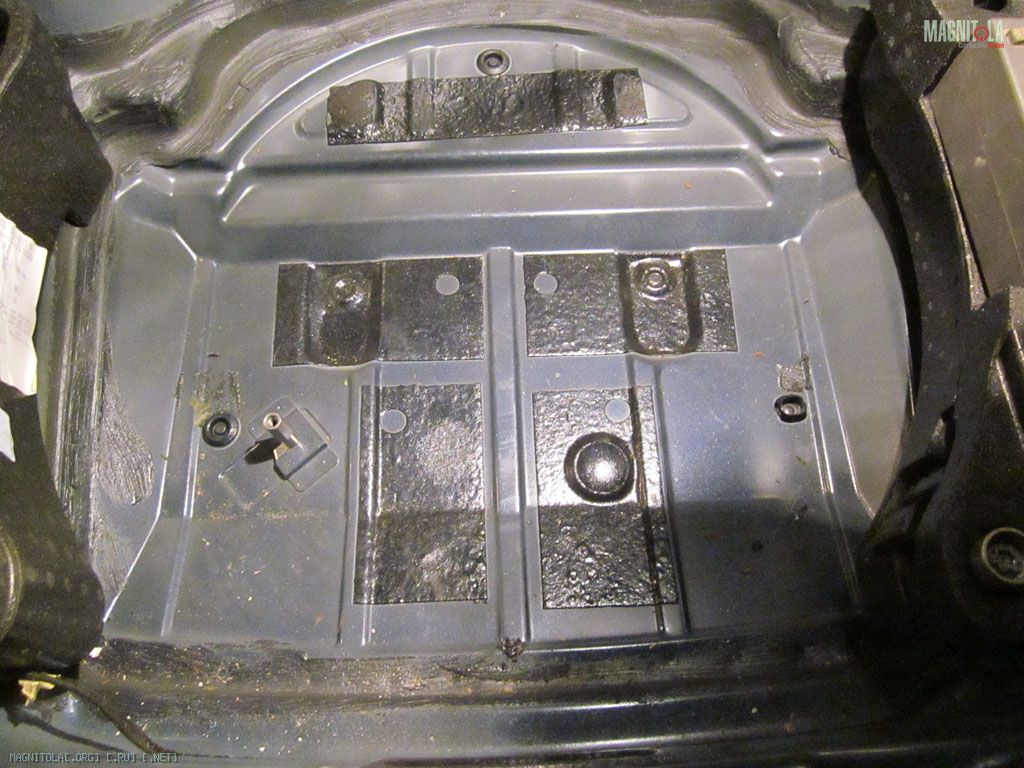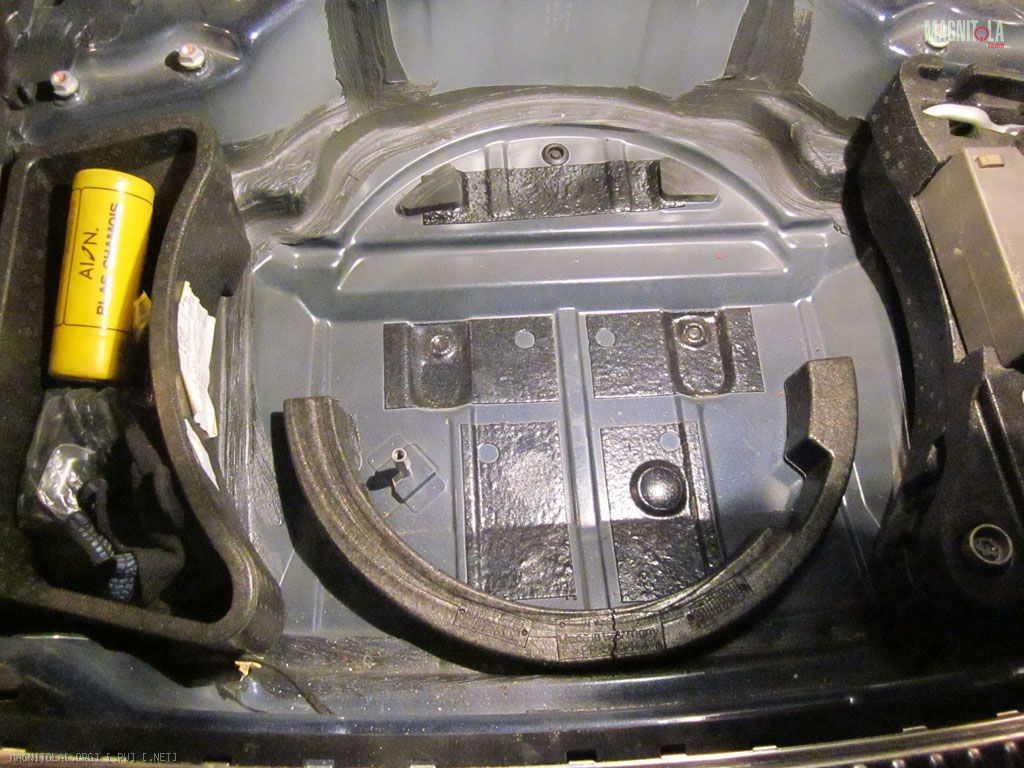 Закатал плоскости ниши запаски МиксФ, смысла лепить сплошным слоем не вижу – металл пипец толстый, на простукивание отзывается как чугунная крышка колодца, бессмысленный расход вибры.