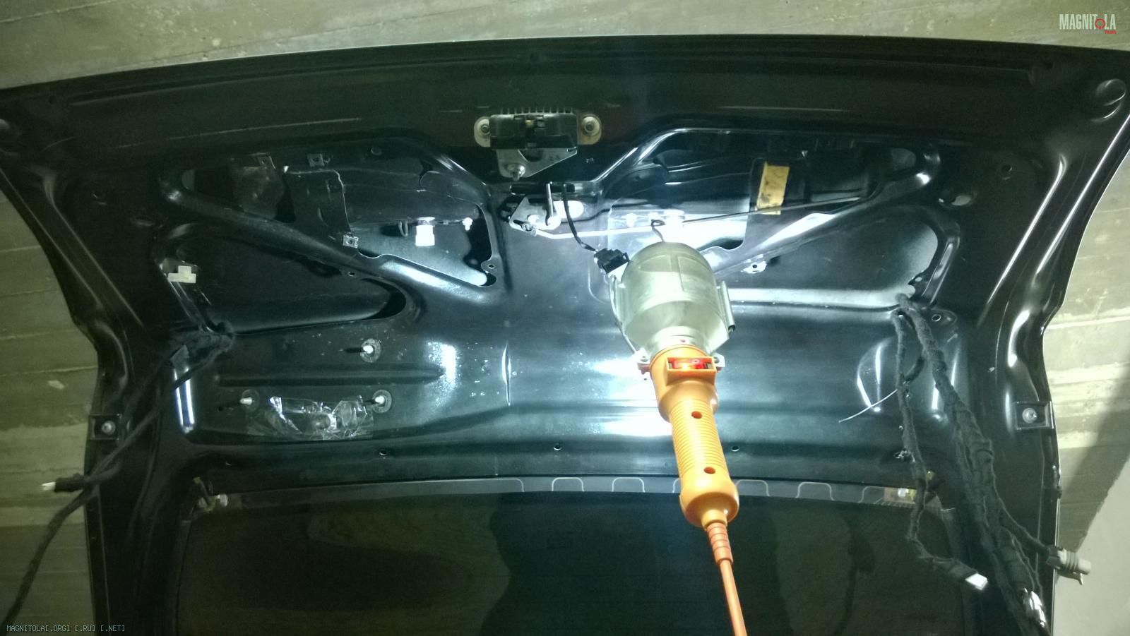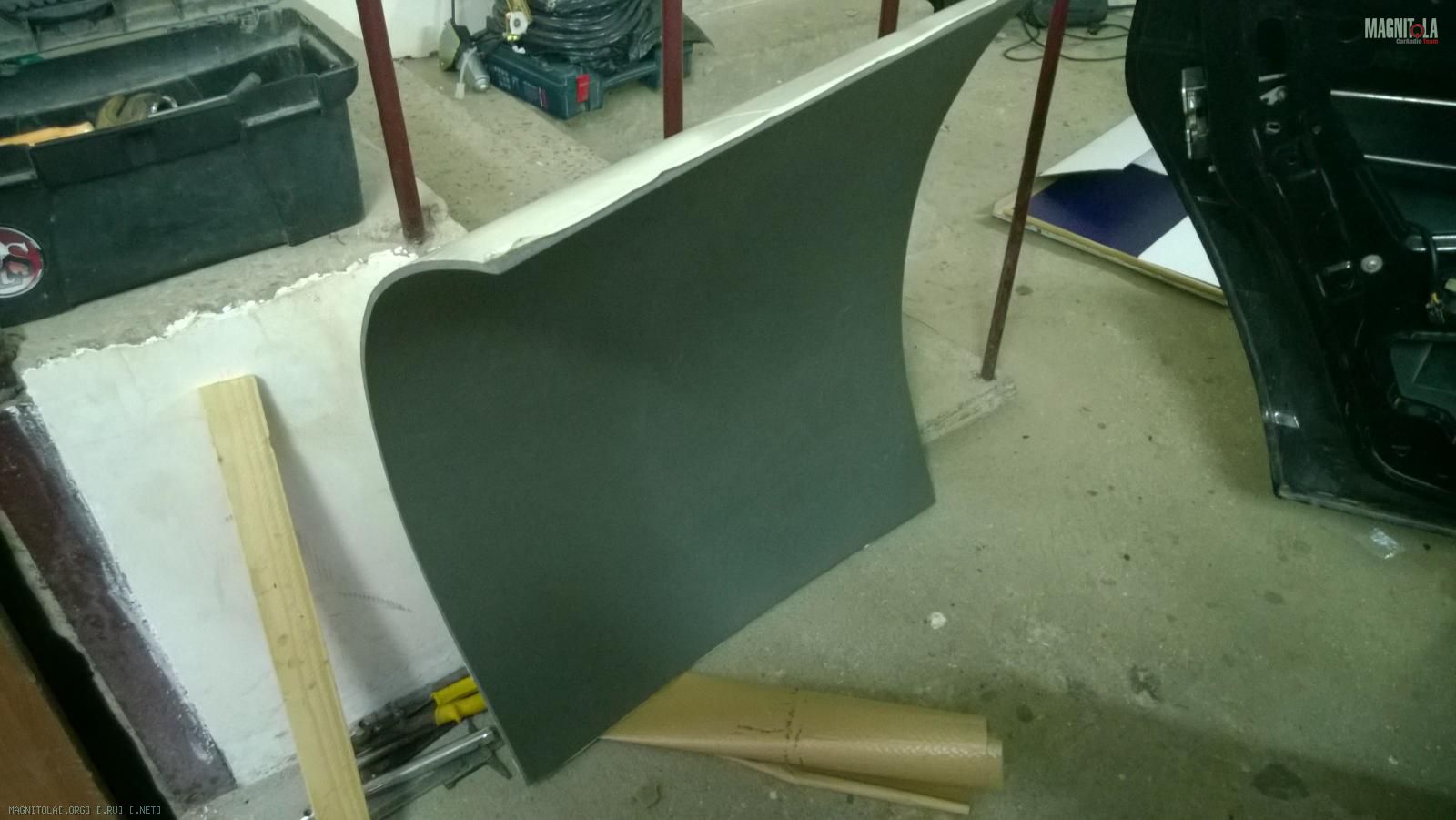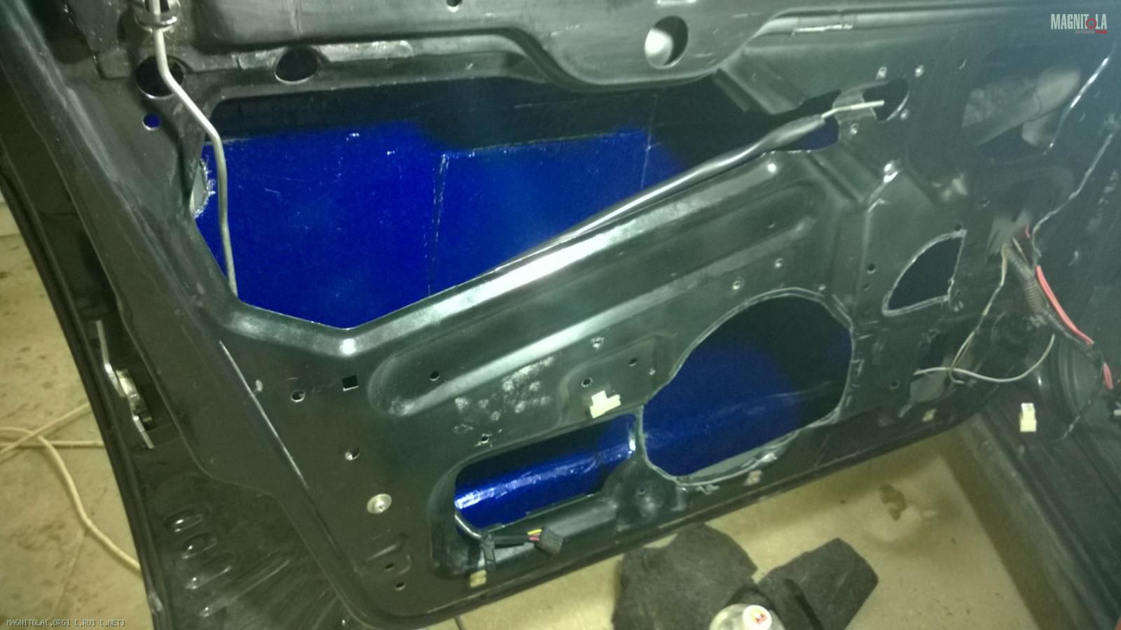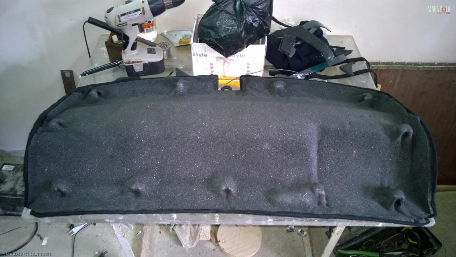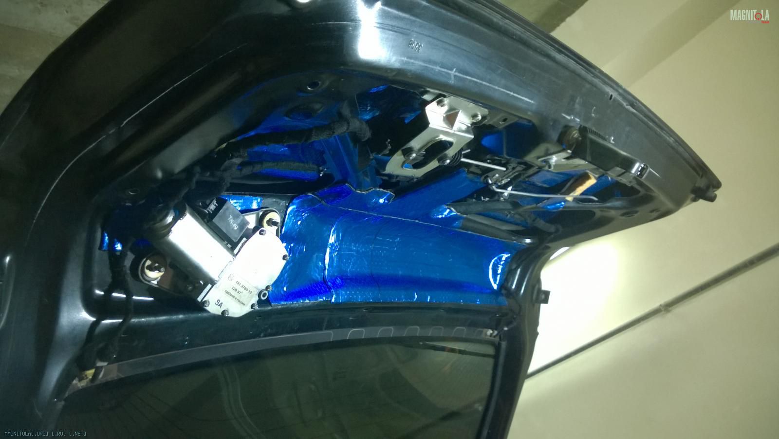 Работа продолжается потихоньку! обшивки поставлены! Не успели сделать новые подиумы на стойки ВЧ, на пока поставили то что было, от предыдущего инсталла и закрыли сеткой, чтоб пальцем не тыкали в ВЧ, дурная привычка у людей(((. Дальше по сценарию проводка силового провода плюса и минуса с аккумулятора, вымыл и вычистил багажник и дверь багажника! Помогал мне мой друг Расим, и установщик в одном лице! Осталось пройтись растворителем или обезжиривателем и потом лепить шумку Индиго.