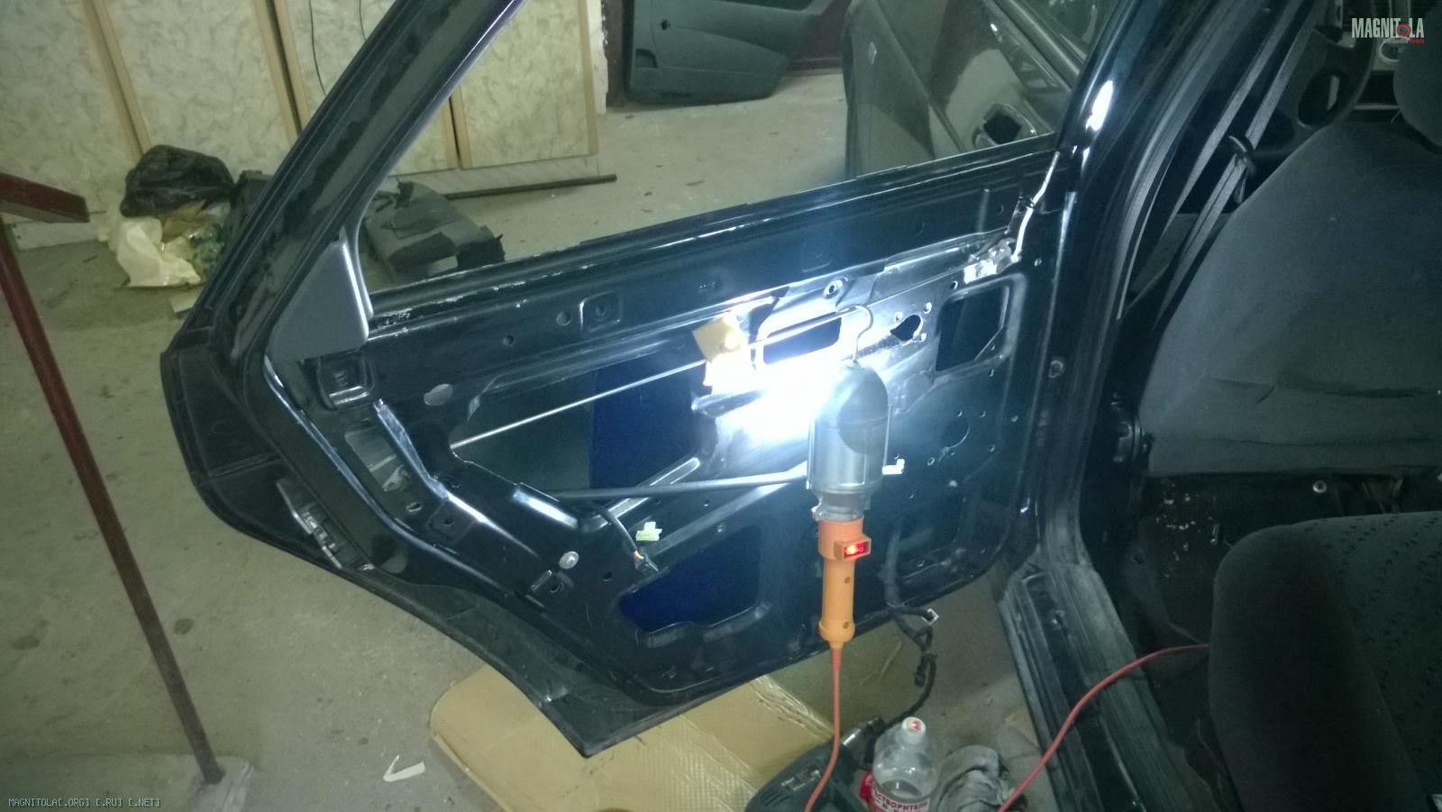 Пока Расим колдует над передними дверями, я снял задние обшивки, в приоритете снять не работающие стекло подъёмники и заменить на новые. так же шумка дверей и крыши.