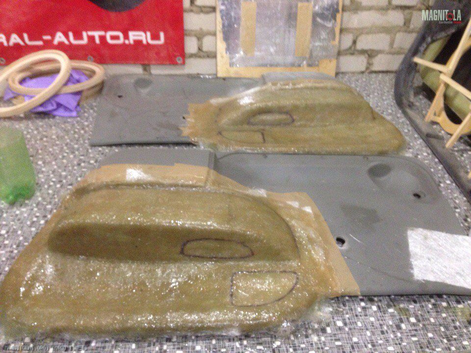 Готовы слепки с дверей под будущие карты. Эти рамки послужат основой для выставления колец под серединки и рупора. Карты будут крепиться по периметру рамки на болты М6. Кстати толщина основы получилась бронебойная где-то 6-8мм (6 слоев 450го стекломата).
