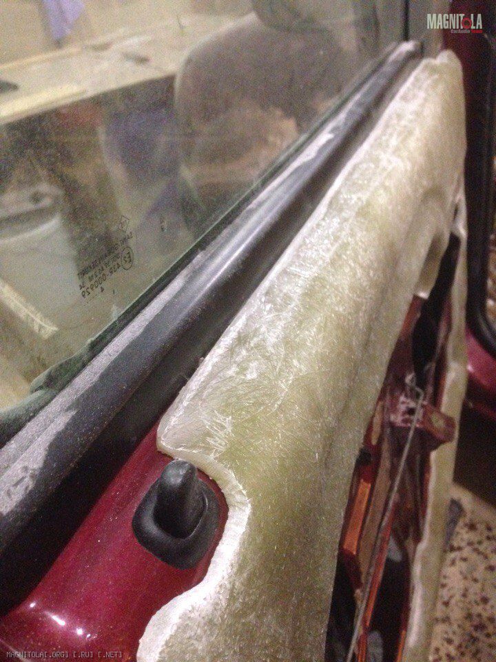 Параллельно дверям начал зачищать излишки от герметизации стойки "Б". Стенка получилась идеальной формы - работы со шпаклевкой будет минимум))