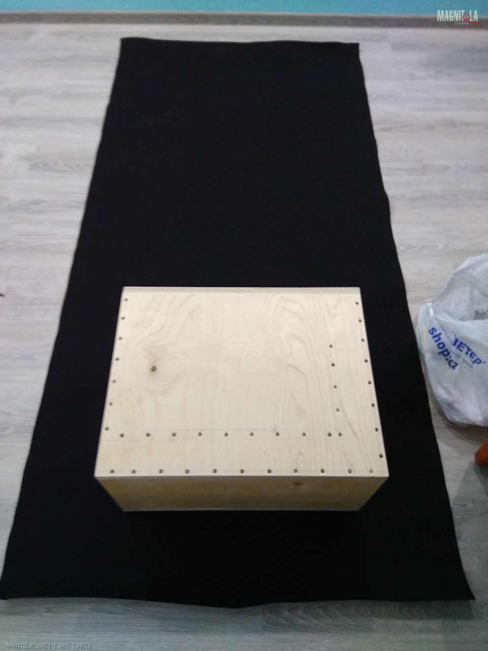 На сборку ушел вечер и пол ночи, все отверстия под саморезы по дереву я предварительно засверливал, да знаю переборщил с саморезами в передней рамке. На следующий день проснувшись после обеда я отправился в город в поисках карпета. Выбрал черный с коротким ворсом. Что мне потребовалось для обтяжки короба: