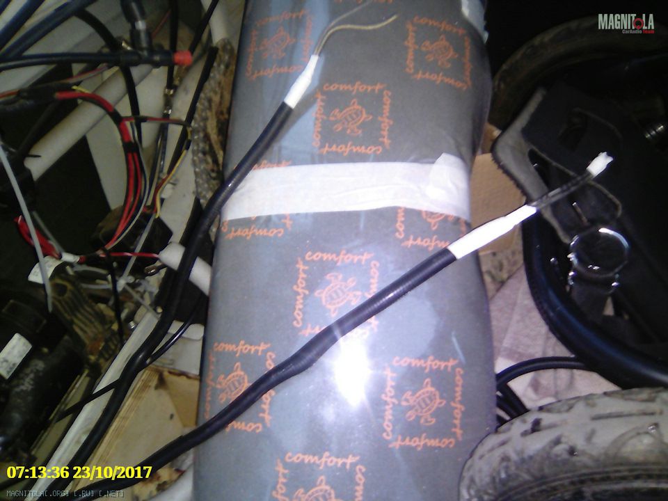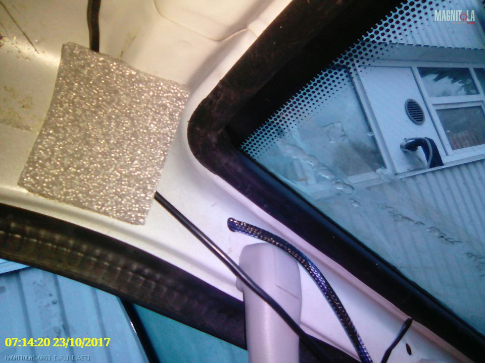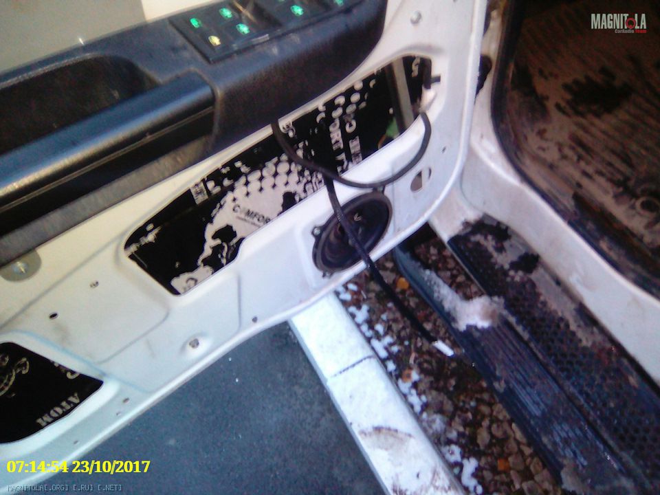 Акустические провода в змеиной коже и в гофре, проложены внутри усилителей кузова и проложены от багажника к передним дверям и ещё выведены на стойки лобового стёкла.