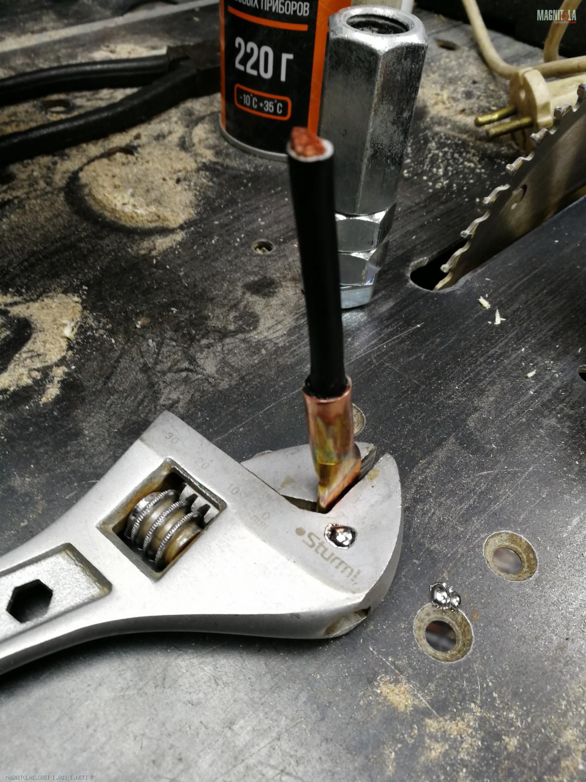 Начал потихоньку собирать все в кучу , наконечники в это раз не обжимал а запаивал ( зажал колбочкой вверх и накусал кусачками туда немного олово все это дело разогрел горелкой зачистил кабель? сунул в кислоту и потом в наконечник) Вложение 1271173Вложение 1271175Вложение 1271177 Думаю что намного лучше чем обжимать.