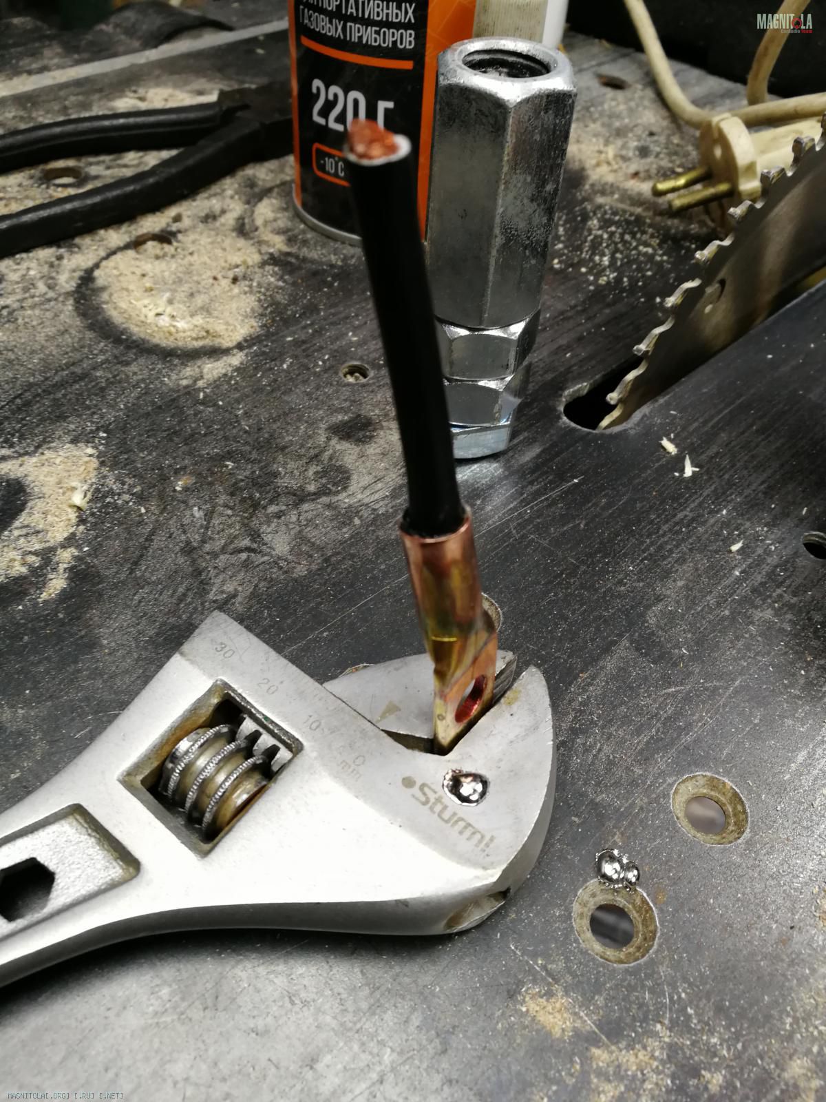 Концы ввода в усилитель в дистрибьютор питания и предохранитель облудил при помощи вот такого устройства нагреваемого газовой горелкойВложение 1271179 (длиная гайка с одной стороны болт закручен все это зажато нагрето с оловом . окунаю кабель в кислоту и туда