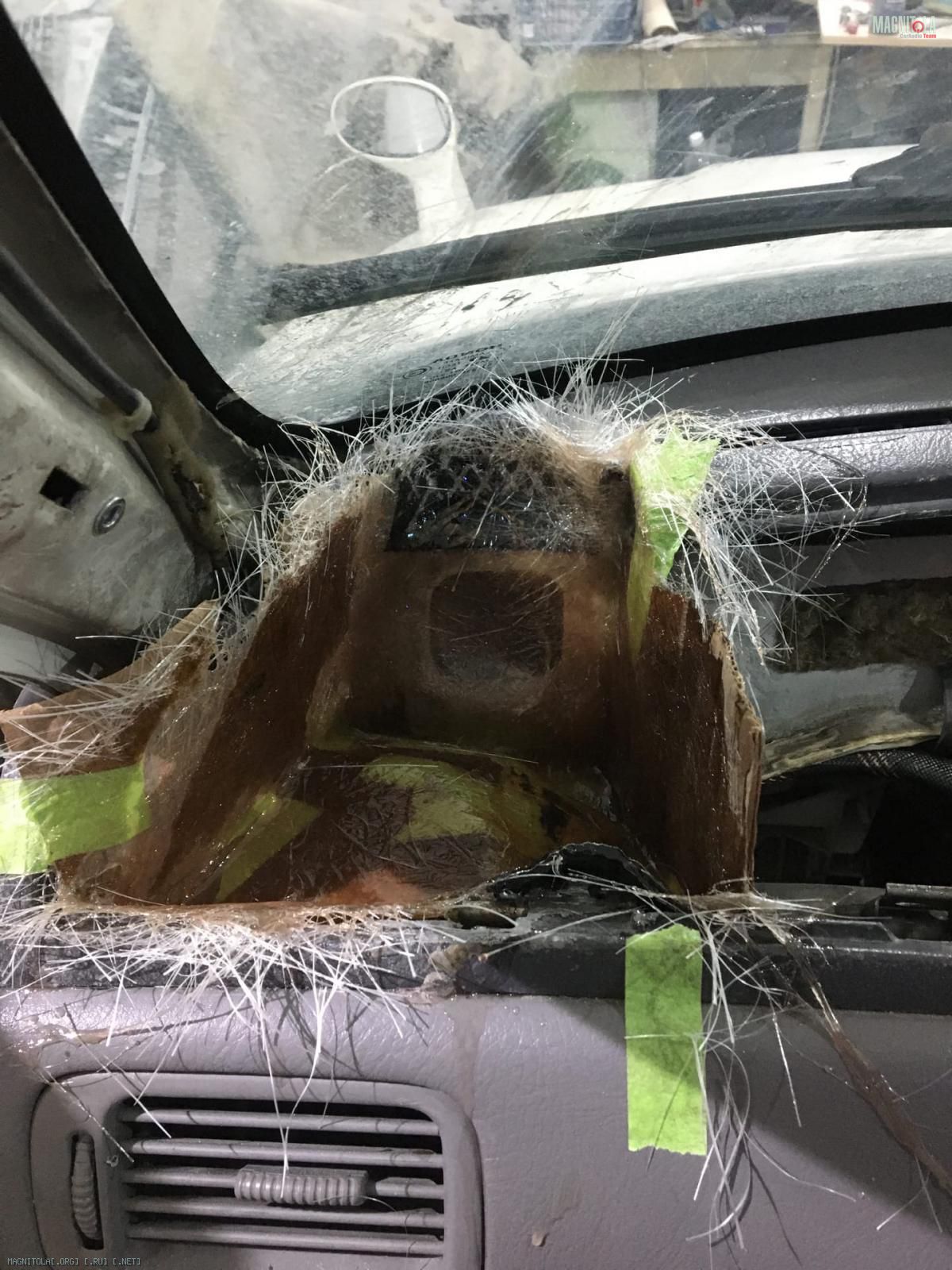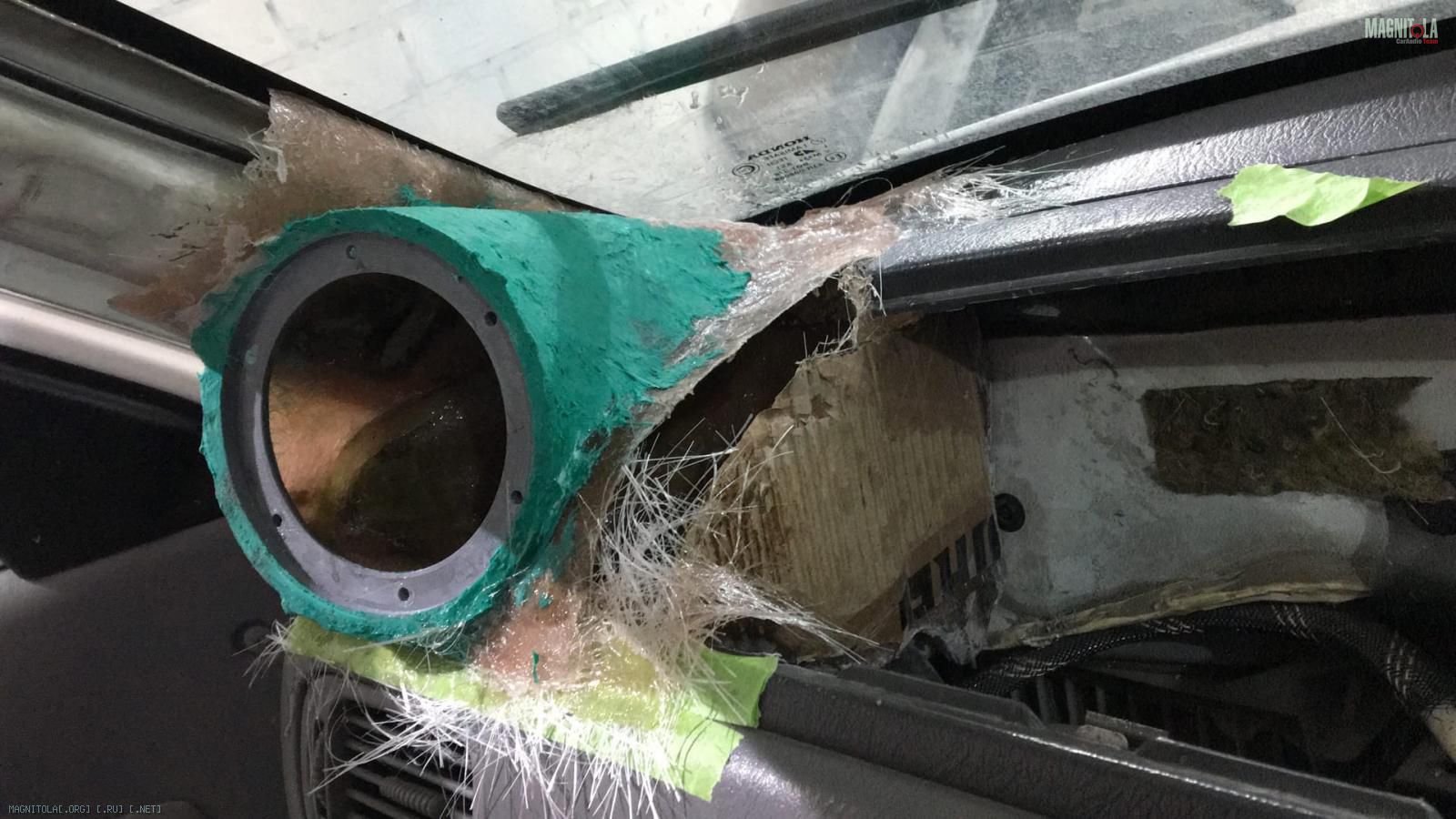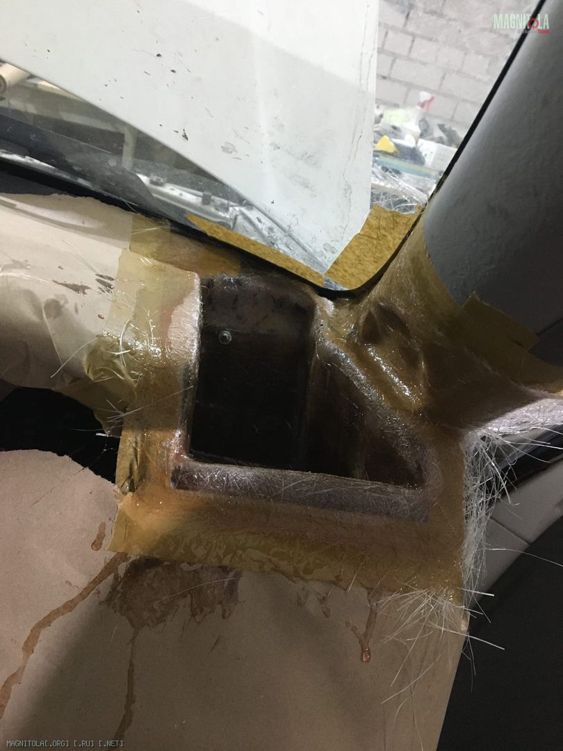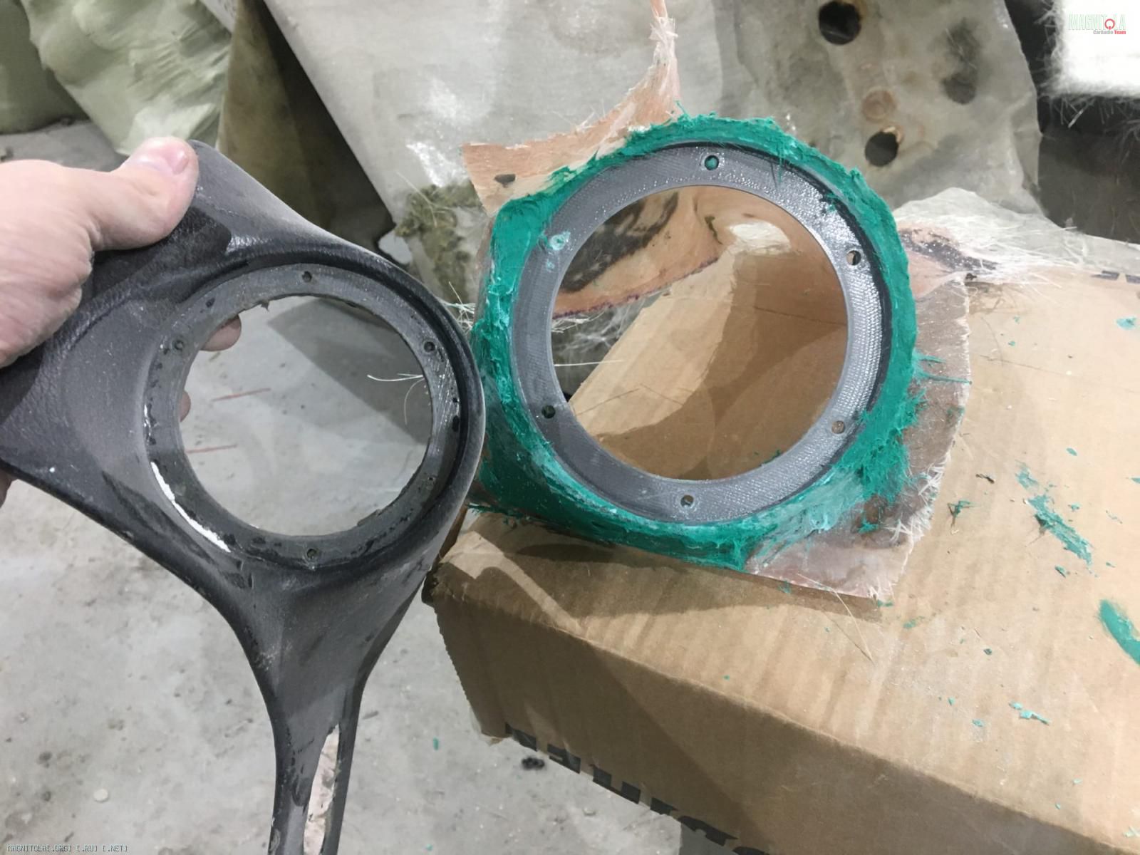Кольцо закрепил на термоклей , дал направление между подголовников и вылепил приблизительную форму из пластилина и залил сверху смолой со стекломатом , предварительно насверлив отверстий и в последствии накрутил еще саморезов изнутри для прочности.