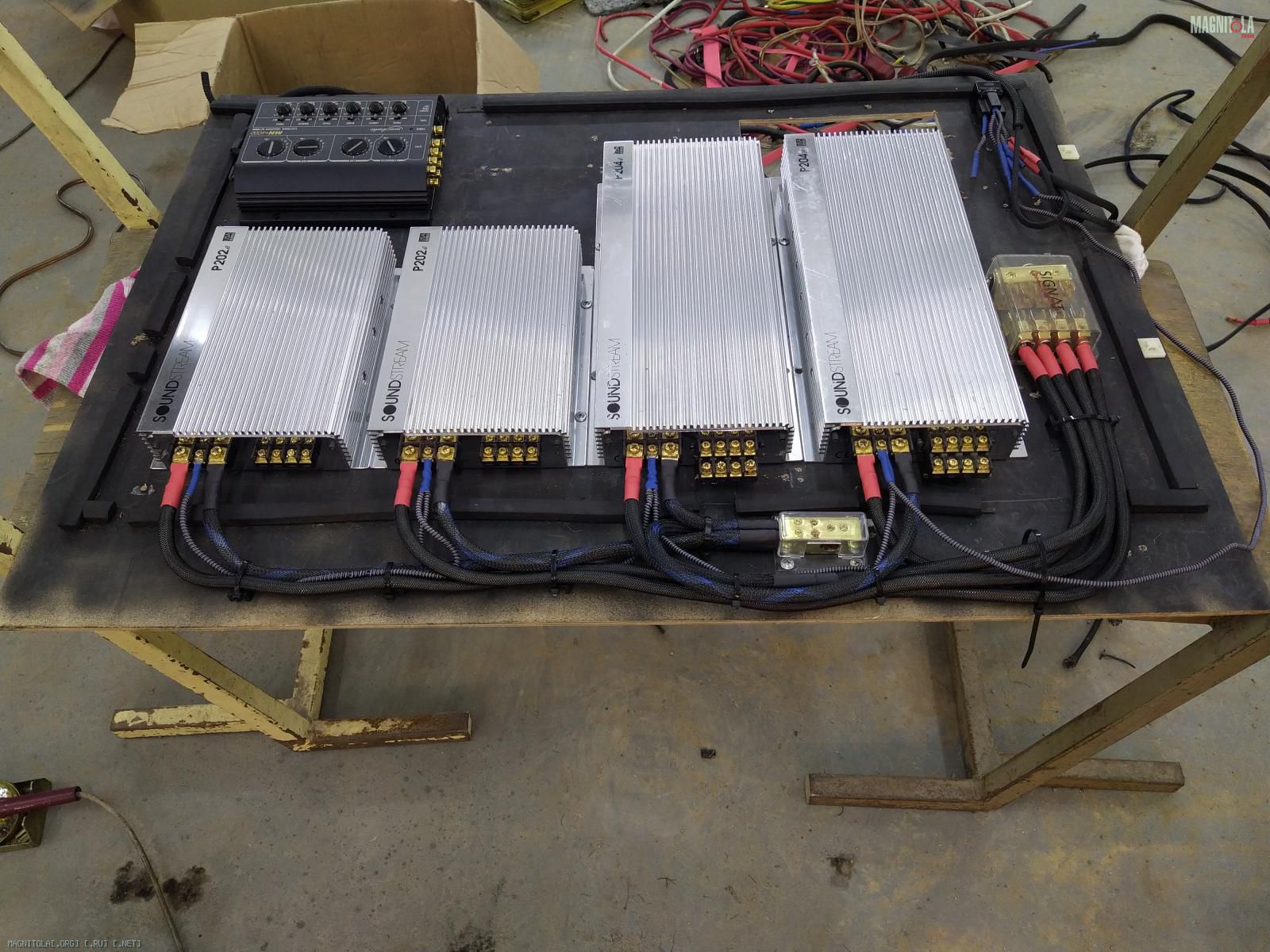 Решено усилителей больше не менять, поэтому была заменена основа - черновик на постоянную. Все компоненты которые уже останутся, были прикреплены болтами в мебельную фурнитуру.