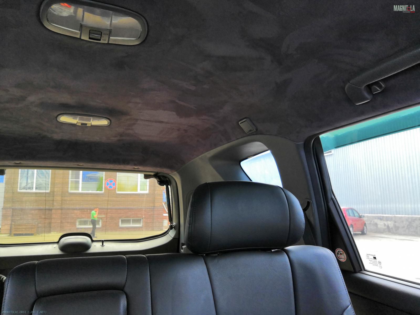 Поставил на место потолок, заодно обтянув его темно-серой алькантарой.