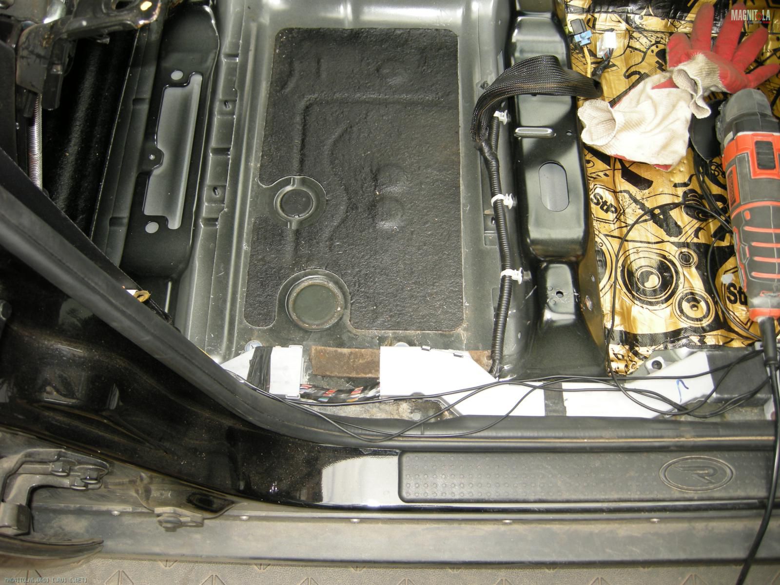 Пока разобраны полы, надо его, кабель, протянуть из моторного отсека до усилителя. Итак, ищем место, где пройдем через моторный отсек в салон. Это место есть и очень удачно расположено.