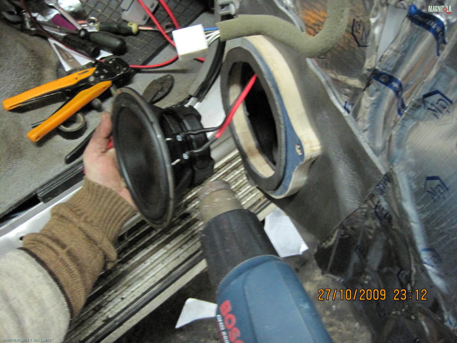 Прятать дин под родную обивку только при компромиссном стоке. Нельзя ,что бы плоскость дина хотя бы краем заходила под карту. Кольцами с наклоном выводить на или лучше за карту салона. У большинства машин родные сетки смотрят в пятку,что ,учитывая диаграммы мидов, не позволяют без провала согласовать их с пищами в двушке. Фронтальные миды стремиться макс доворачивать на ручку КПП. Опять,же левый дин чуть довернуть назад. Решение? Только свои ,выклеенные подиумы нахлобучки на карту.Вот тогда можно успокоиться) и знать,что у вас это не слабое звено в системе.