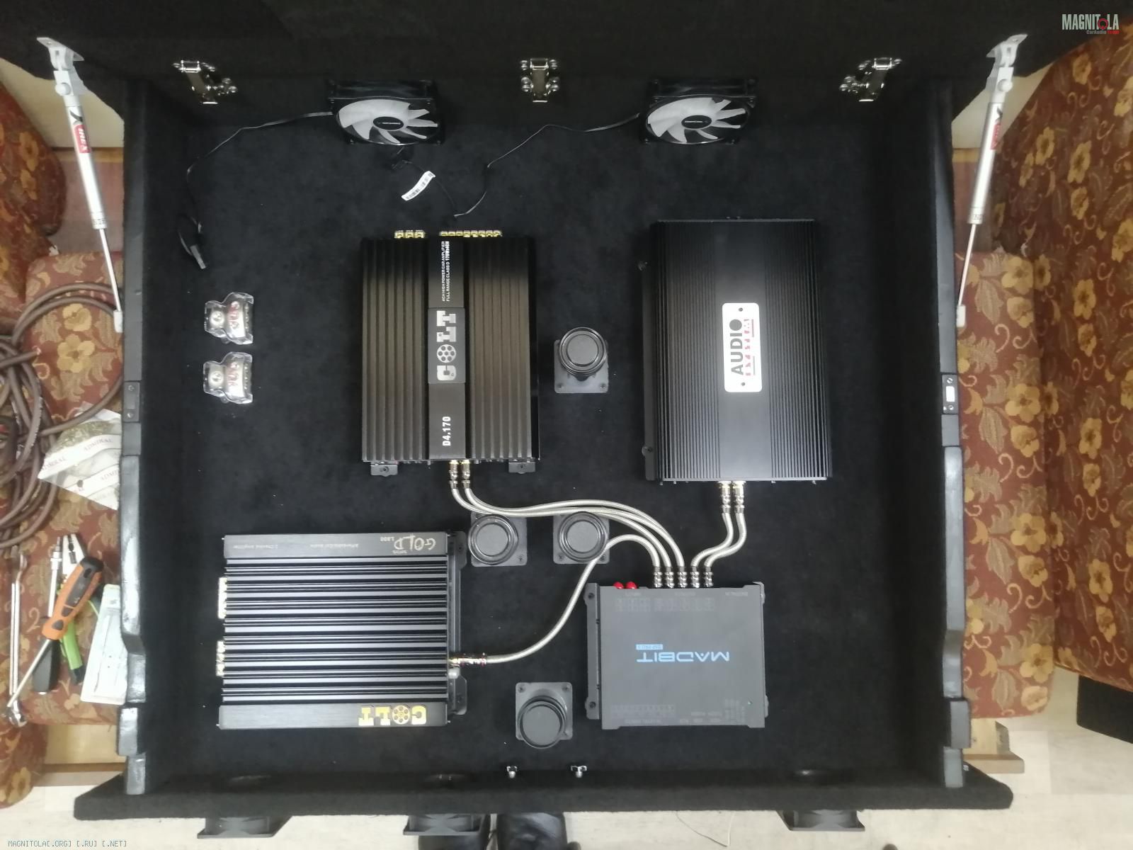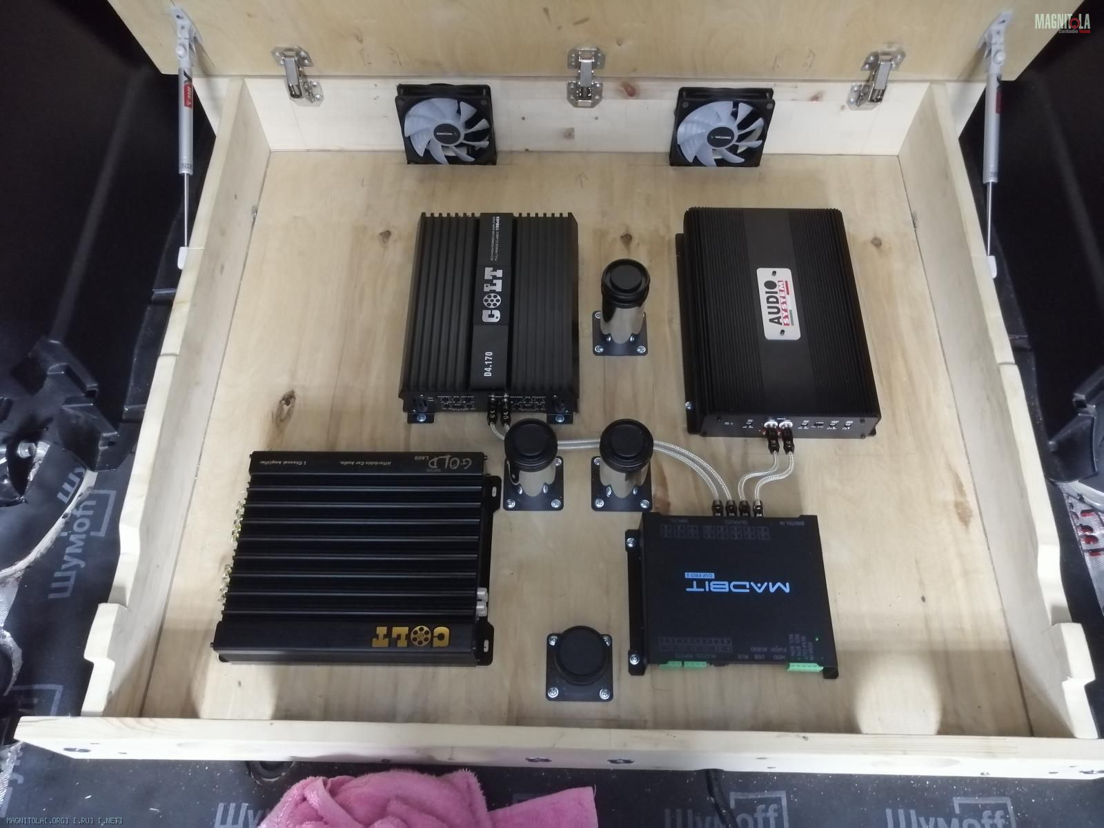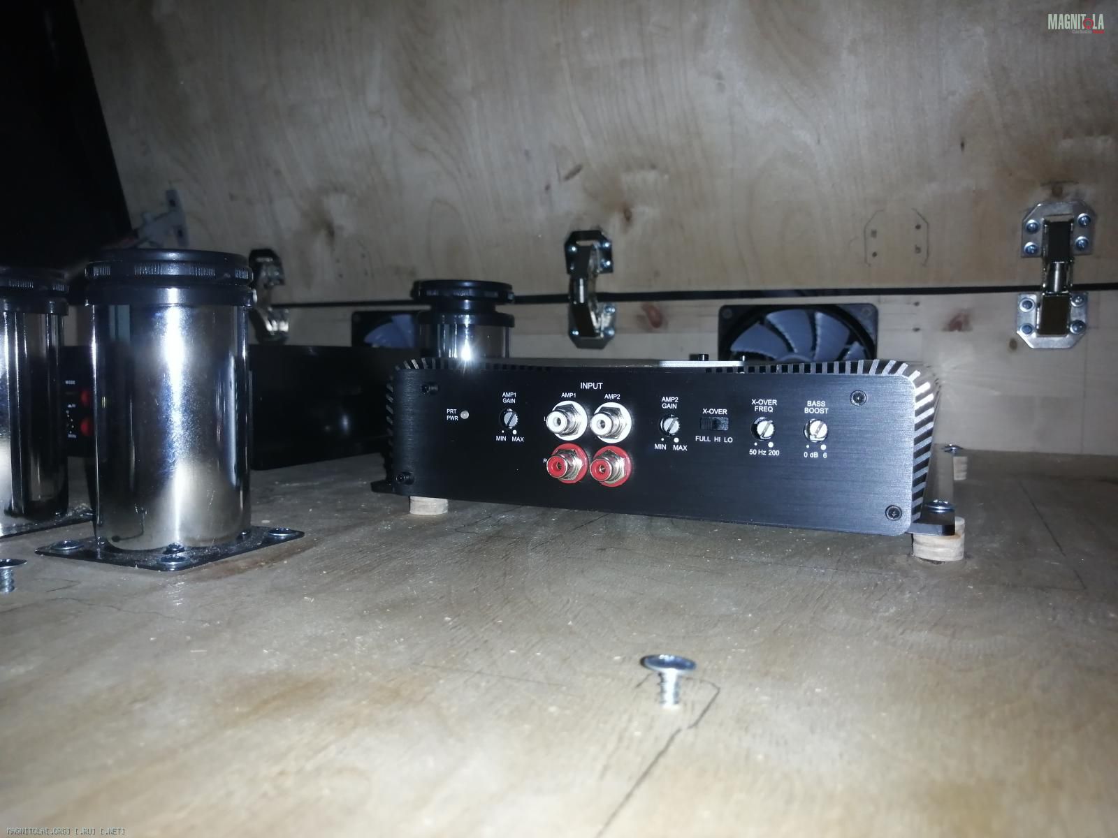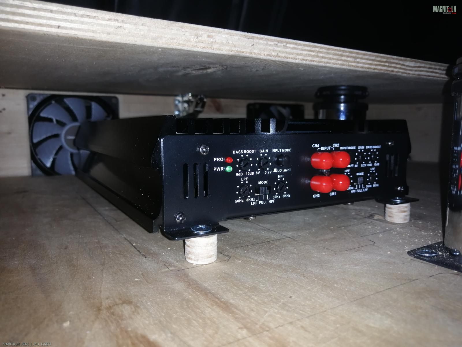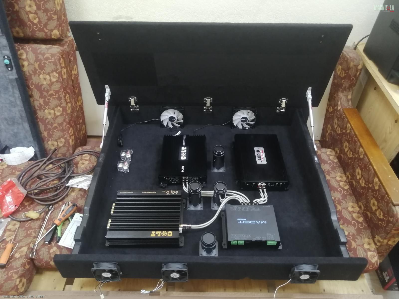 Два больших вентилятора будут работать на выдув. Три поменьше на вдув. Усилки и процессор поднял на ножки. Сверху места достаточно. Единственно усилок на саб. Сверху места поменьше остаётся. Но он D класса и возле него будет два вентилятора. Чувствую, запуск в эксплуатацию ещё не скоро.