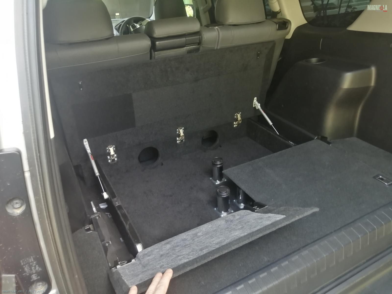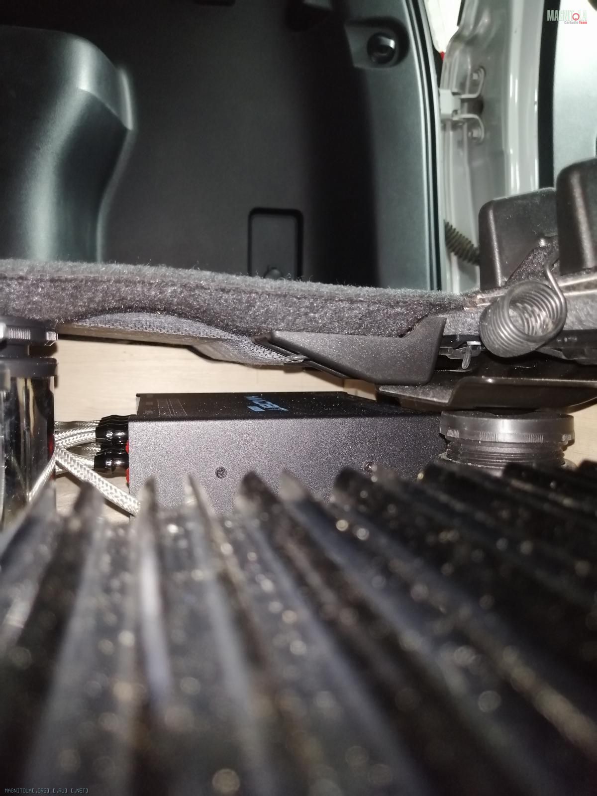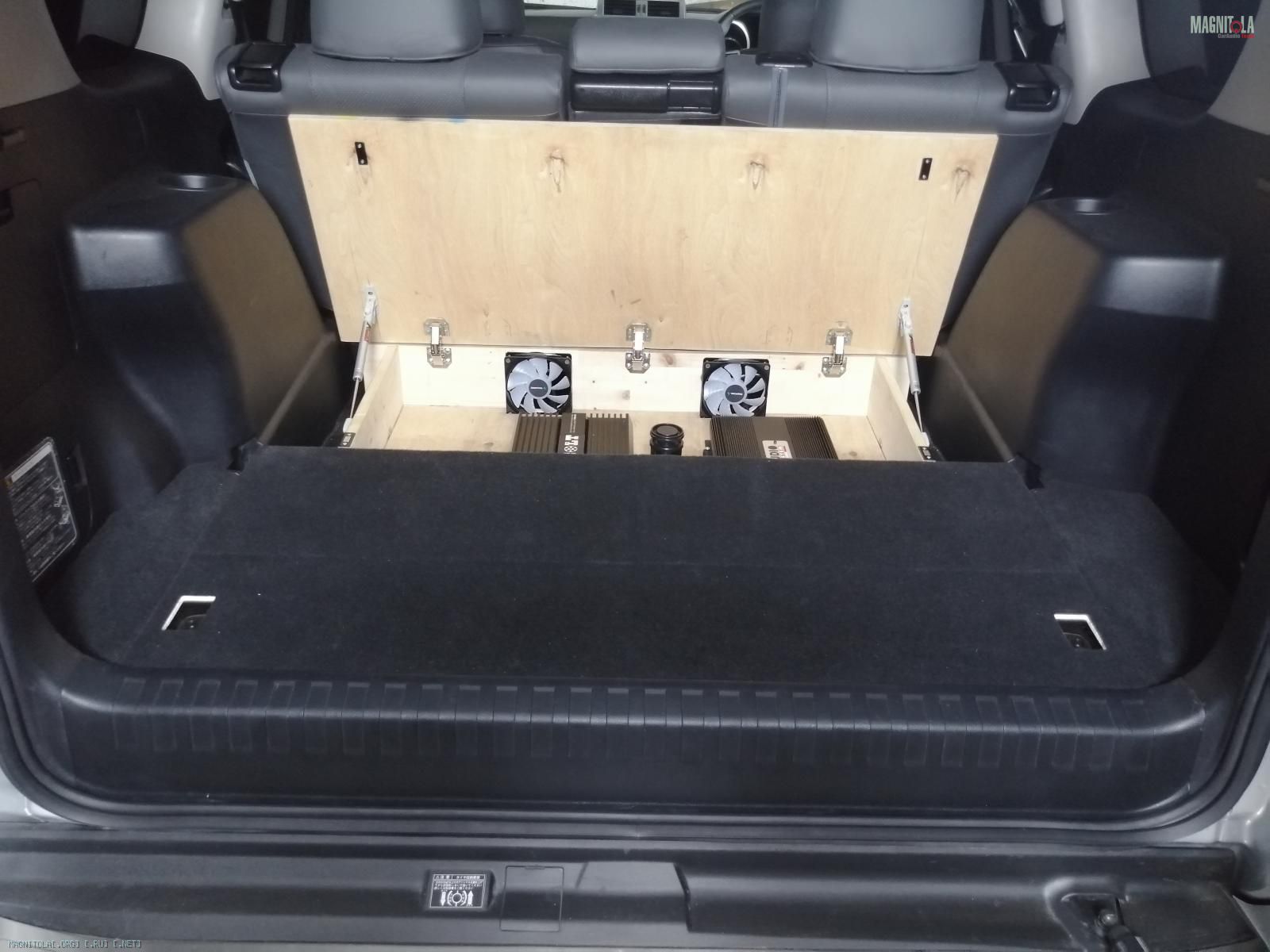 В общем получается такая картина, ящик планирую зашкурить, покрасить и обтянуть карпет шумофф аккустик. В закрытом положении думаю будет выглядеть как обычный багажник. Можно будет использовать его по прямому назначению. Функционал не должен пострадать, для этого поставил усиление, регулируемые по высоте мебельные ножки. Выглядит конечно не очень, зато очень удобно и функцию свою выполняют, пол не продавливается.
