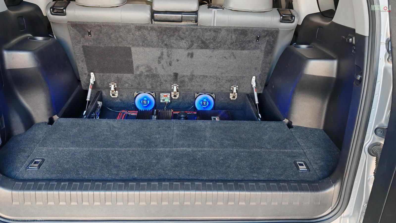 Минус от кузова взял от болта крепления ремня безопасности для третьего ряда сидений в багажнике, 3 ряд сидений снят, его место занял короб под музыку, ремни соответственно тоже снял.