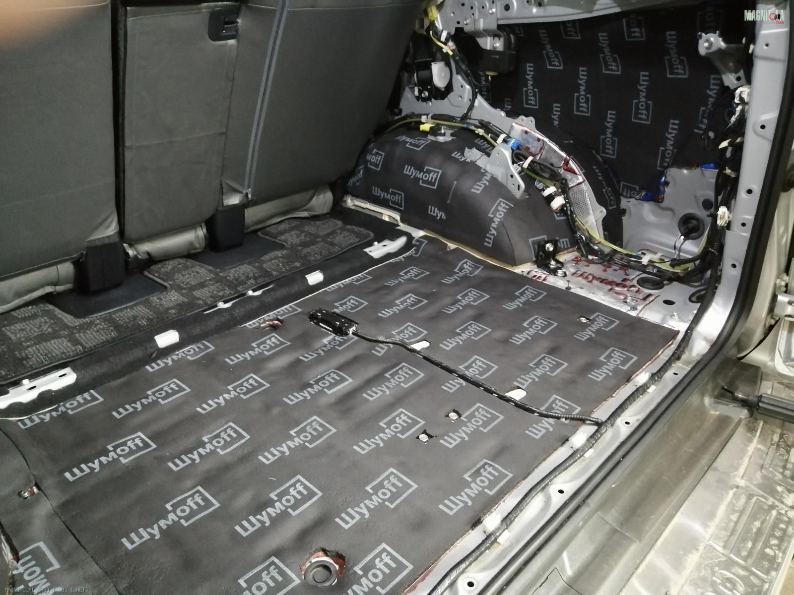 Фото по шумке багажника. Материалы Шумoff виброизоляция микс ф на пол и арки, и суперджек на крылья, вторым слоем комфорт 6.