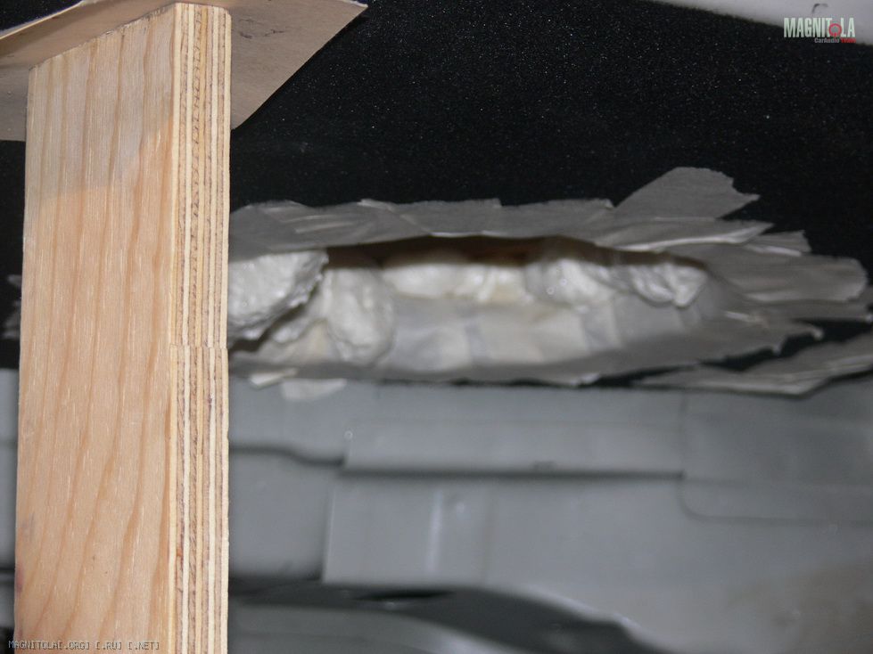 кстати что запихать между фанерой и металополкой? есть варианты: 1.толстый поролон полностью под фанеру по размеру и 2.стянуть и пену в щели около отверстий под сабы и по внешнему краю. по второму варианту - горбом не выпрет фанера, пена же расширяется при высыхании?