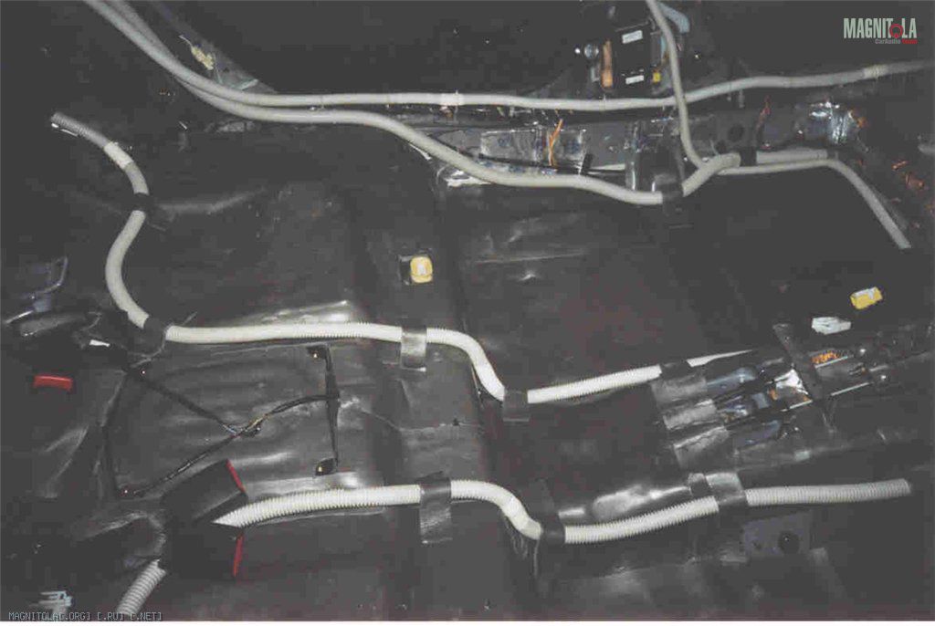 Так как компоненты покупались постепенно, то почти два года система эксплуатировалась только с ГУ, без процессора. Усилитель был снят с прежней машины, пятиканальный Fusion FE-505. Инсталляцию начал в собственном гараже и как обычно с полной шумовиброизоляции (ШВИ).