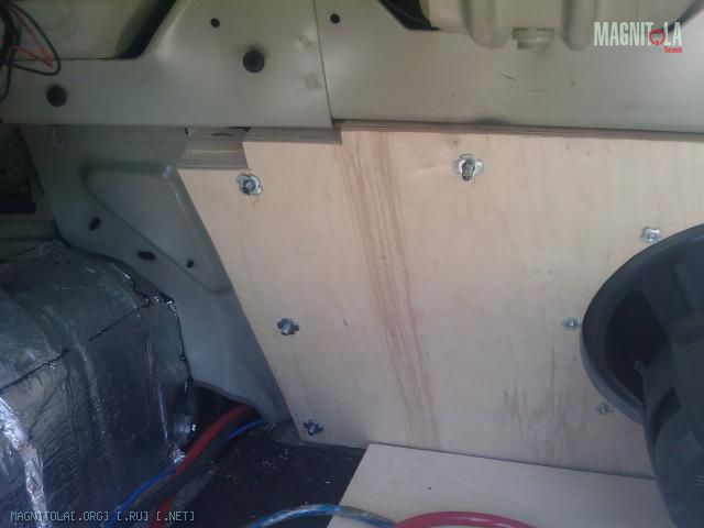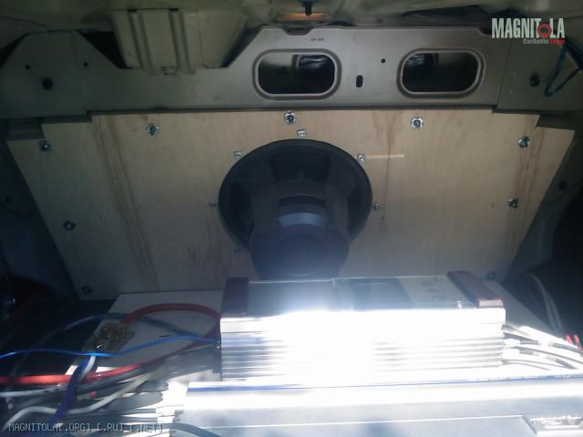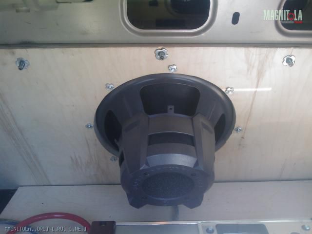 крепил саб на забывных гайках и винтах ) ... дырку випиливал что бы саб входил впритык .. конечно ровно не получилось но тоже хорошо вышло)