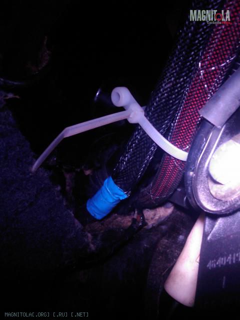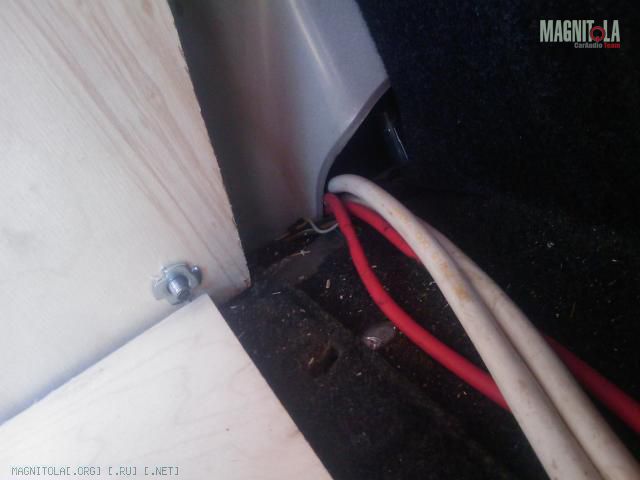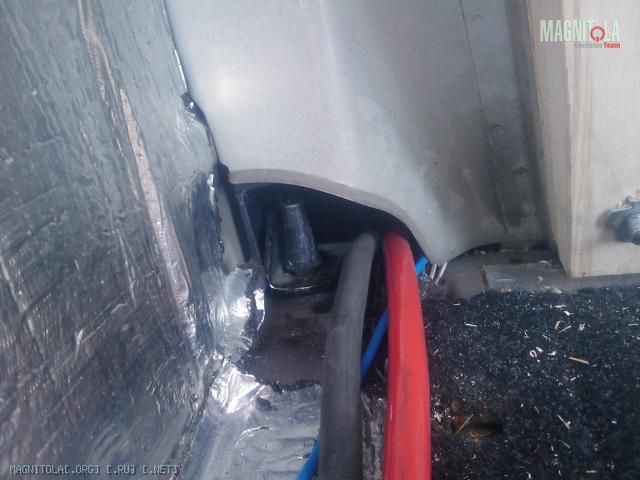 дабы исключить проблемы питания уся .. решил протянуть к нему новый плюс ... протянул кабель 2 га ... и заодно решил протянуть и землю от акума что бы уж наверняка ... поизучав инструкцию к авто нашел дырку в которую войдет кабель .. при ближайшем рассмотрени выяснилось что дай бог 4га провод туда влезил .. причем уже в змейке не лезит прям впритык вобшем ... но да небеда смазка) и КГ-25 протянулся от минуса акума до багажника ...