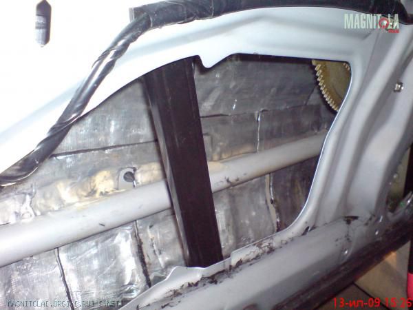 Сегодня друг уехал в отпуск и оставил мне ключи от гаража. Я решил зашумить двери. Начал уже после обеда. В результате успел только одну левую, правую буду делать завтра. Заодно сразу подготовил акустические кабели. Во внутрь двери клеил АБРИС+ , он тостый и продаётся полосами. На салонную сторону наклеил STP. Он продаётся большими листами и его удобно клеить на большие поверхности. сплен тоже прикупил, но ещё не клеил, поклею когда смонтирую кольца на дверях. Раскраивал по поэлителену который приклеен на дверь со стороны салона, получается точная выкройка. Результат порадовал. При постукивании дверь издаёт звук, как если постучать по бруску дерева. http://magnitola.org/picture.php?alb...=10433&thumb=1 http://magnitola.org/picture.php?alb...=10434&thumb=1 http://magnitola.org/picture.php?alb...=10435&thumb=1 http://magnitola.org/picture.php?alb...=10436&thumb=1