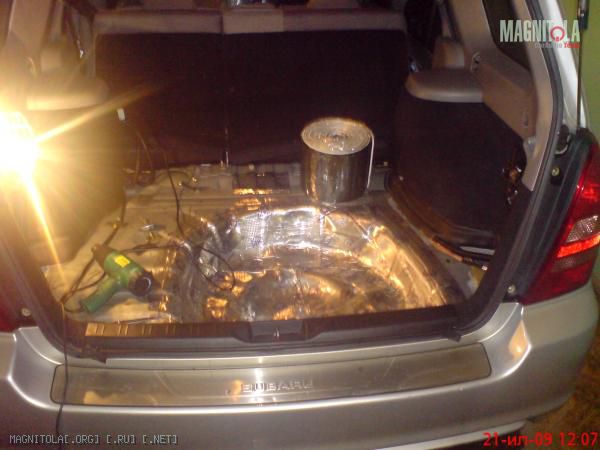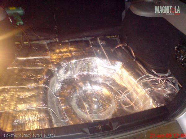 Сегодня устанавливал ящик с усилителями в багажник. Решил немного подшумить место под запаской. На нём шумоизоляции не было вовсе. Где была заводская вибра, там не трогал. Потом проклеил шумоизоляцией производства Абрис, водрузил ящик и приступил к монтажу проводов внутри него. Всё не успел закончить, доделаю завтра.http://magnitola.org/picture.php?alb...=10777&thumb=1 http://magnitola.org/picture.php?alb...=10778&thumb=1