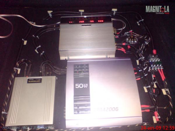 Сегодня наконец - то закончил с проводкой в ящике и подал питание. Всё заработало хорошо, усилки совсем не нагреваются( правда у нас сейчас температура+15 по цельсию). Собрал будущие СЧ, заделал провода для них, наполнил супершерстью. Сегодня прорезал обшивку правой двери под будущий подиум НЧ, установил кольца и обклеил дверь спленом. Получается неплохо, работой доволен. При заведённом двигателе напряжение на усилителях 14 вольт, фары (ксенон) горят и не мигают, конденсатора нет. Сейчас езжу, слушаю две пищи и саб, занятно, как в фильме про Гулливера.http://magnitola.org/picture.php?alb...=10947&thumb=1 http://magnitola.org/picture.php?alb...=10948&thumb=1 http://magnitola.org/picture.php?alb...=10952&thumb=1 http://magnitola.org/picture.php?alb...=10951&thumb=1 http://magnitola.org/picture.php?alb...=10954&thumb=1 http://magnitola.org/picture.php?alb...=10956&thumb=1:good2: