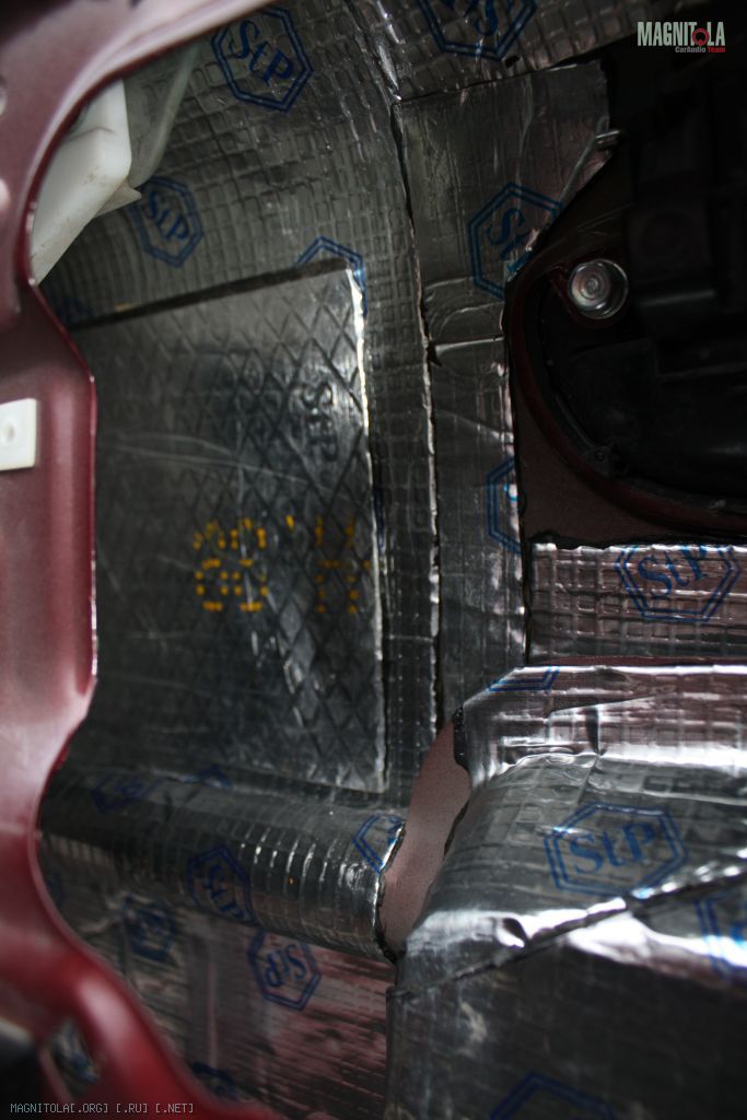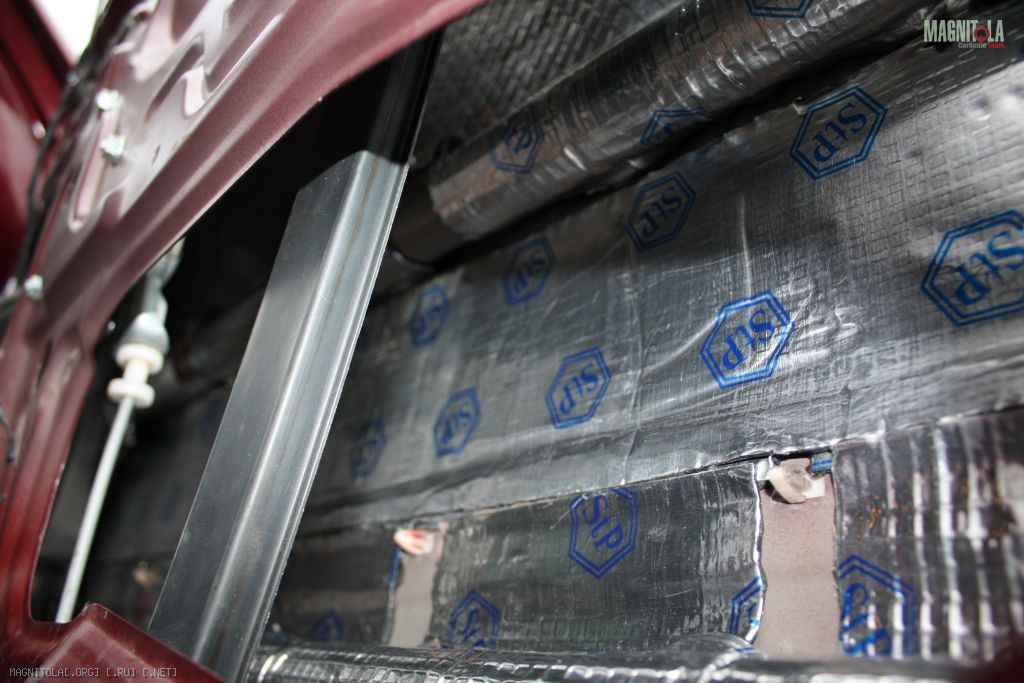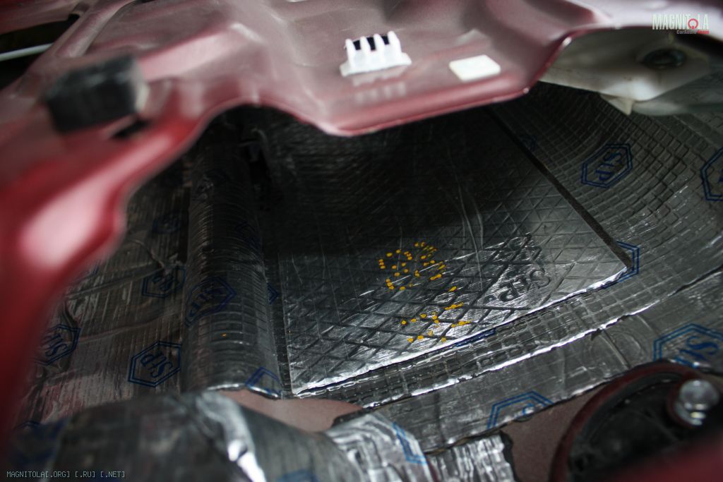 Обшивка двери проклеяна вибропластом М2 и битопластом.