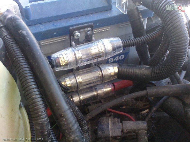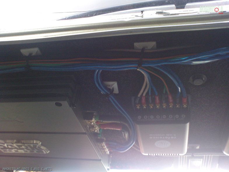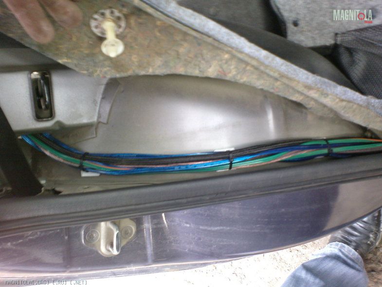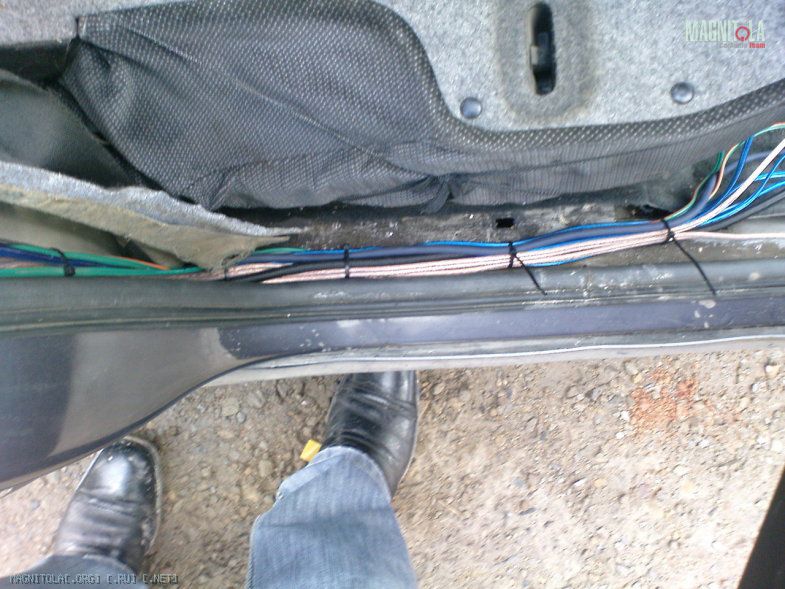 Все аккустические и межблочные провода идут по правому порогу (сила по левому)