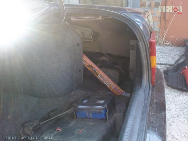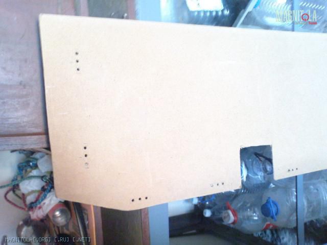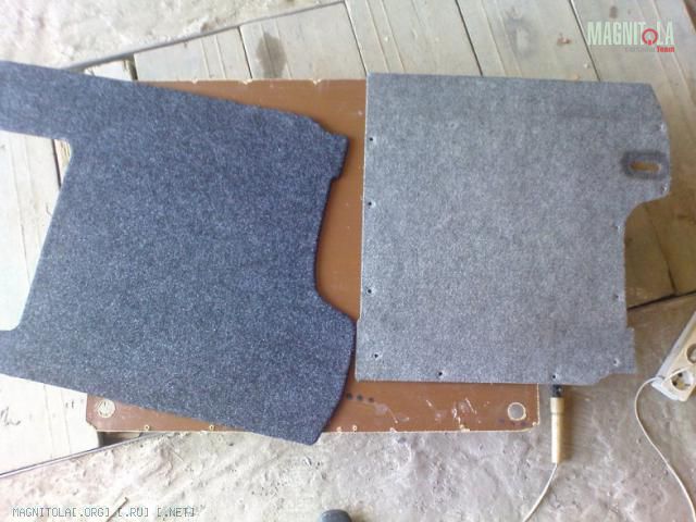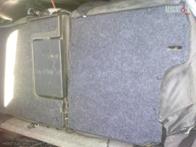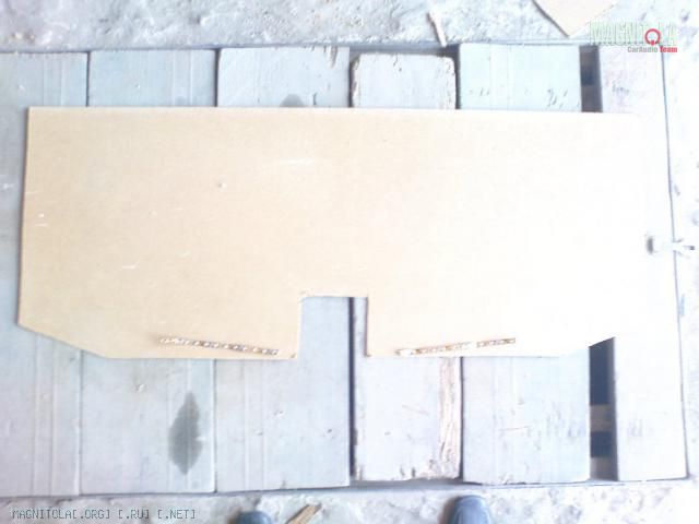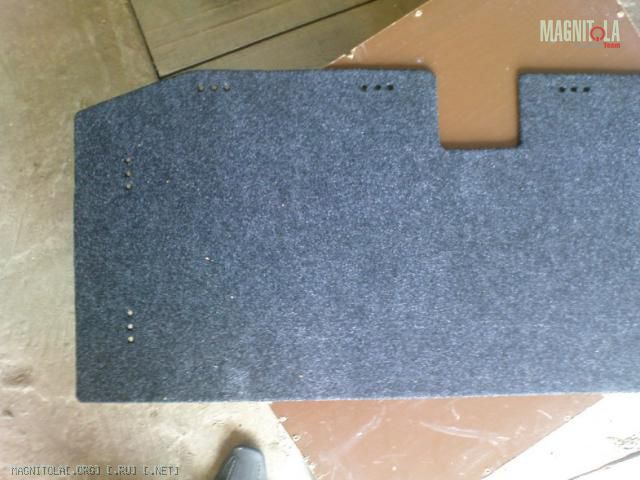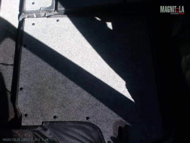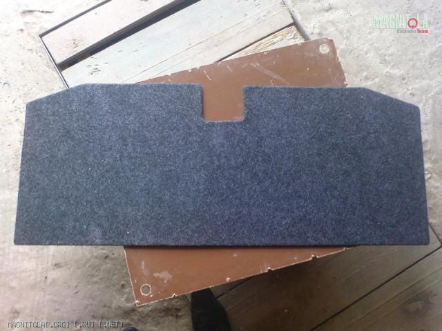 Вот эту полочку и усилители на последней фотке придется убирать, т.к. саб новый крупнокалиберный, и короб бы просто не влез по высоте. А чтобы не оставался голый метал я решил вырезать из ДВП кусочек такой же формы что и полка и обтянуть карпетом + поставить туда подсветку!