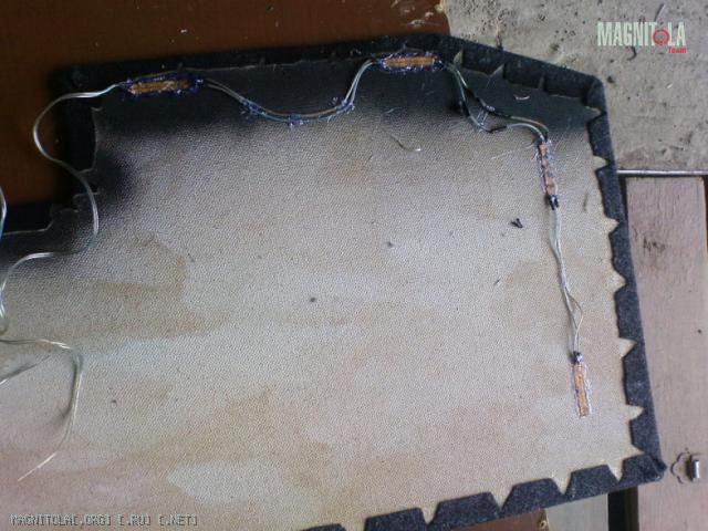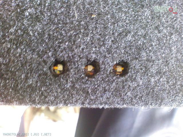 Далше надо было проделать в карпете дырочки под подсветку. Окуратно вырезать круглые отверстия канцелярским ножом не получилось. Посидев, подумав, я придумал кое-что! А именно паяльник! Нагрел и попрожигал окуратненько дырочки!