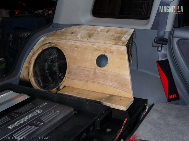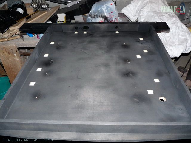 Начил наращивать заднюю стенку саба карпетом пропитанным эпоксидкой. Хотелось бы увеличить объем до 35-37л.